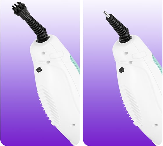 Конструкция «2 в 1» предусматривает использование ручного модуля паровой швабры с насадками без присоединения к нему удлинительной ручки. Большое количество насадок в комплекте поможет очистить труднодоступные или сильнозагрязненные поверхности. Струйная насадка поможет очистить щели и углы. Латунная и нейлоновая щетки эффективно очищают сложные загрязнения с помощью механического воздействия. Для очистки окон, зеркал и кафельной плитки используется насадка со скребком. Вы можете надеть на насадку со скребком тряпку с ворсом для сбора сгоняемой скребком воды и впитывания загрязнений. Благодаря паровому шлангу вы сможете провести очистку труднодоступных мест. С помощью мерного стакана из комплекта удобно заполнять резервуар для воды. Спица для прочистки сопла предназначена для удаления загрязнений в паровом сопле ручного модуля, паровом шланге и насадках.
