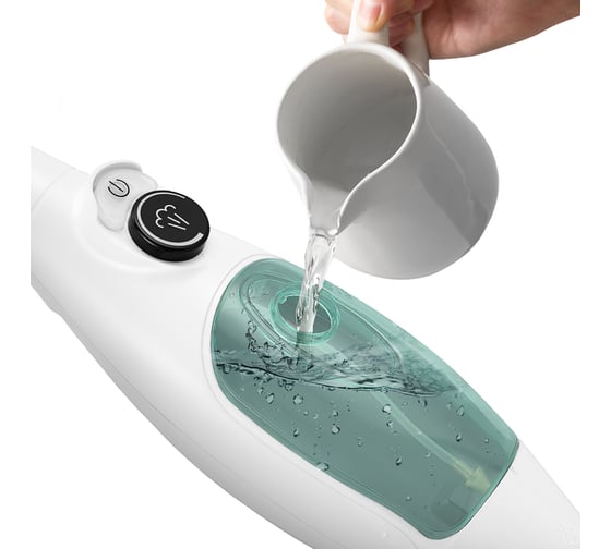Устройство оснащено съемным резервуаром для воды емкостью 400 мл, что позволяет производить непрерывную уборку до 10–15 минут в зависимости от интенсивности выходящего пара.