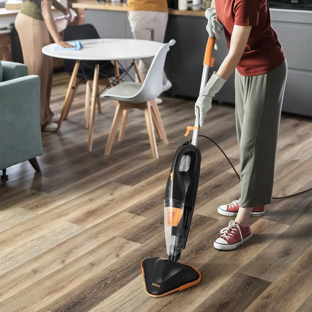 Паровая швабра «2 в 1» с ручным пылесосом КТ-3923 — универсальное устройство, которое совмещает в себе функции паровой швабры и ручного пылесоса. Прибор поможет быстро избавиться от пыли и грязи и продезинфицировать обрабатываемую поверхность.