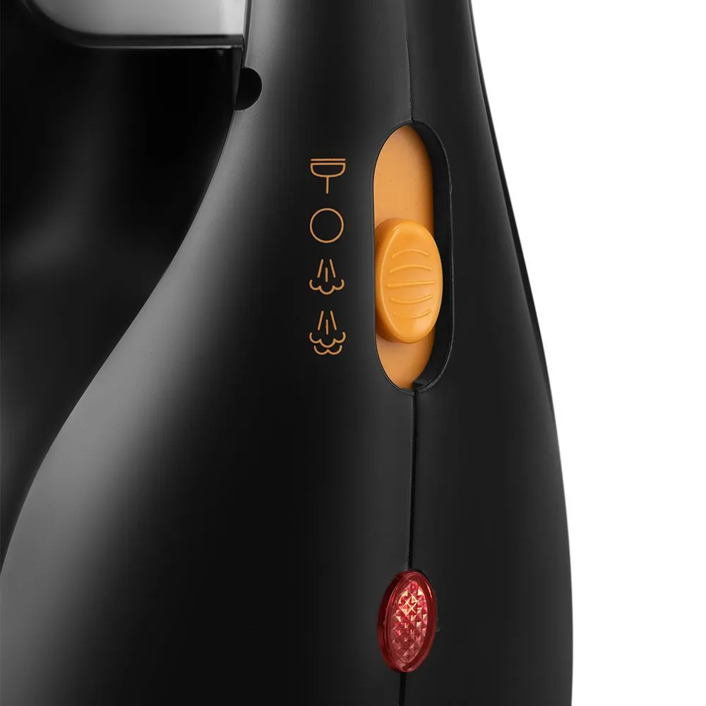 При подключении устройства к сети загорается световой индикатор. У переключателя 4 положения: высокий уровень подачи пара, низкий уровень подачи пара, выключение, работа в режиме ручного пылесоса.