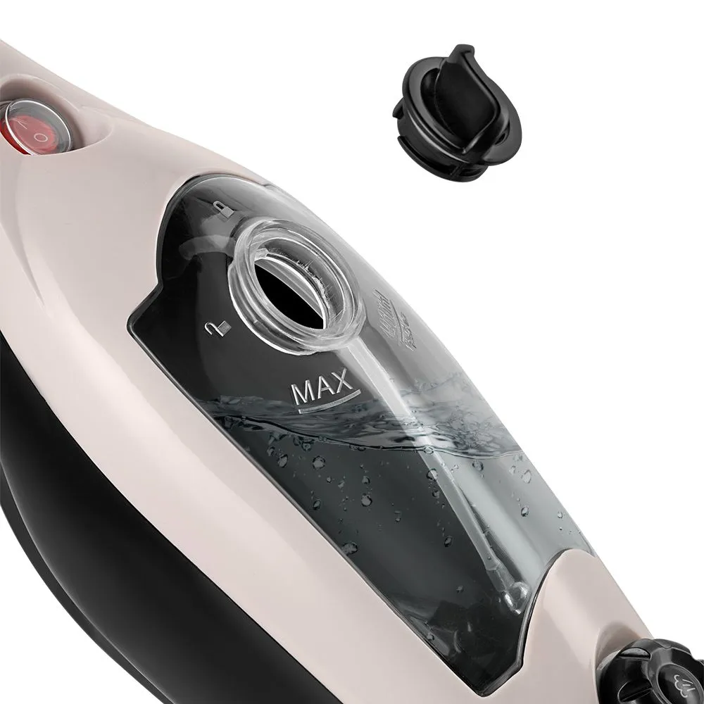 Устройство оснащено съёмным резервуаром для воды ёмкостью 400 мл, что позволяет производить непрерывную уборку до 15-30 минут в зависимости от интенсивности выходящего пара. Для удобного наливания воды в комплекте предусмотрен мерный стакан.