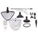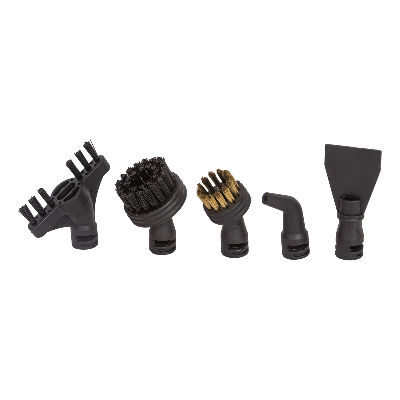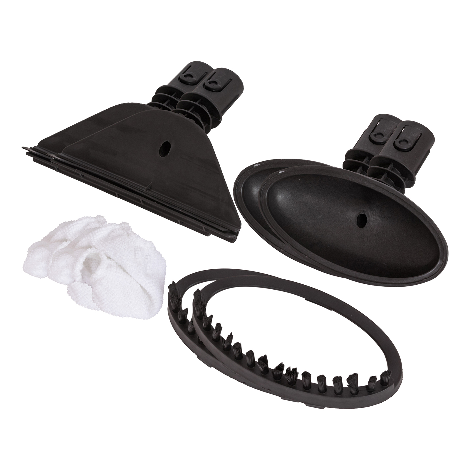 швабра, мерный стакан, воронка, насадка для очистки ковров, насадка из микрофибры для очистки пола, конусная насадка, металлическая щетка, нейлоновая щетка, насадка скребок, изогнутая насадка, насадка-щетка для очистки межплиточных швов, насадка для отпаривания, микрофибра для отпаривания, дополнительная щетка для отпаривания, насадка для окон, инструкция на русском языке