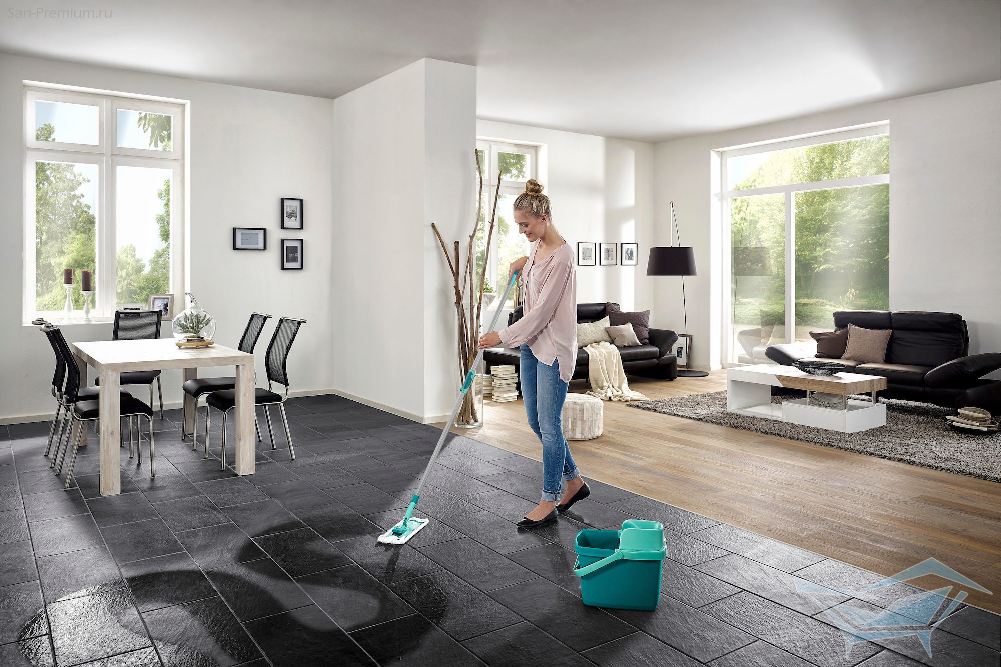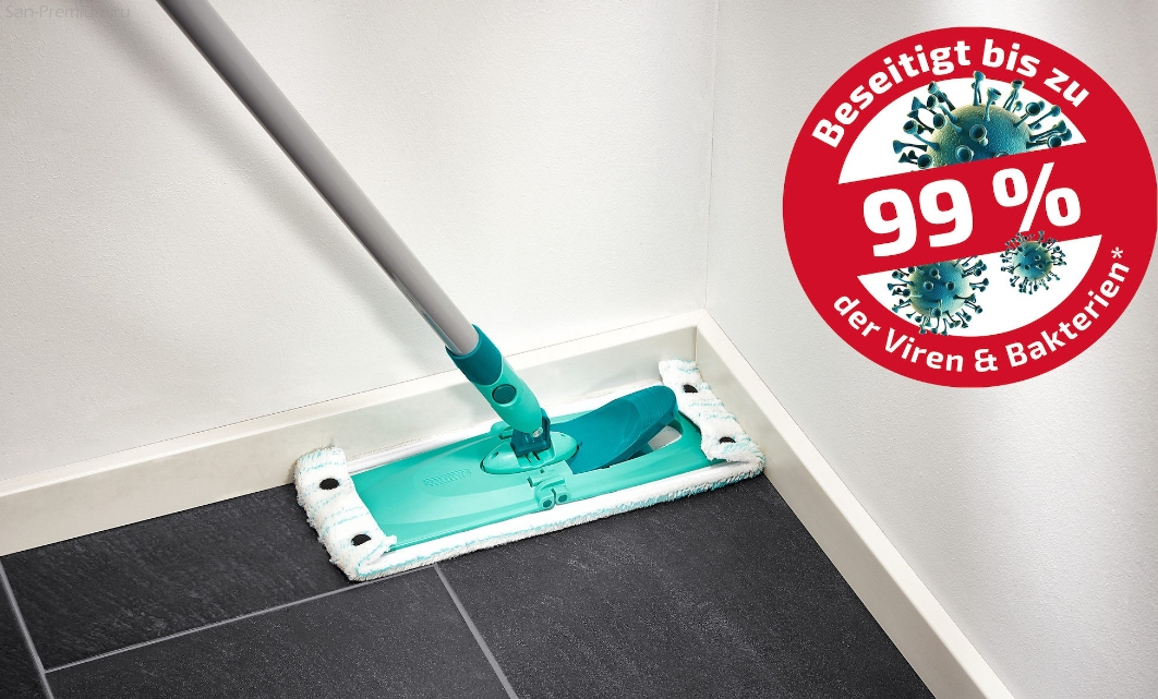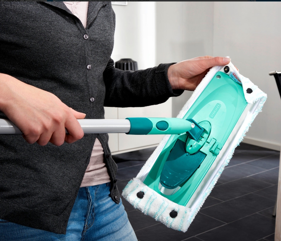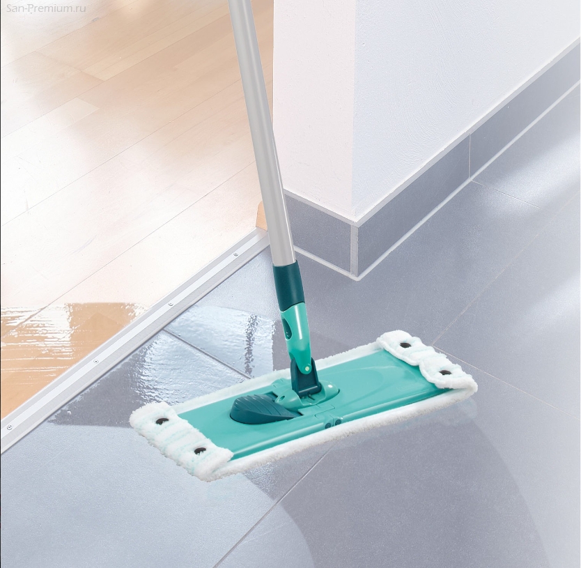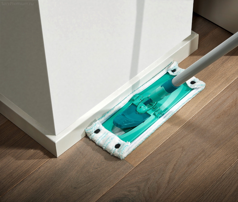 Швабра Combi M компании Leifheit оснащена насадкой Extra soft для деликатной уборки полов с повышенной чувствительностью к влаге и воздействию абразивных частиц. Насадка имеет особую 2-волоконную структуру, отличающуюся повышенной эффективностью поглощения влаги и грязи. Способ ее крепления на платформу при помощи кнопок обеспечивает возможность одновременной очистки основной плоскости пола, углов и плинтусов.