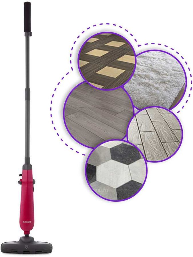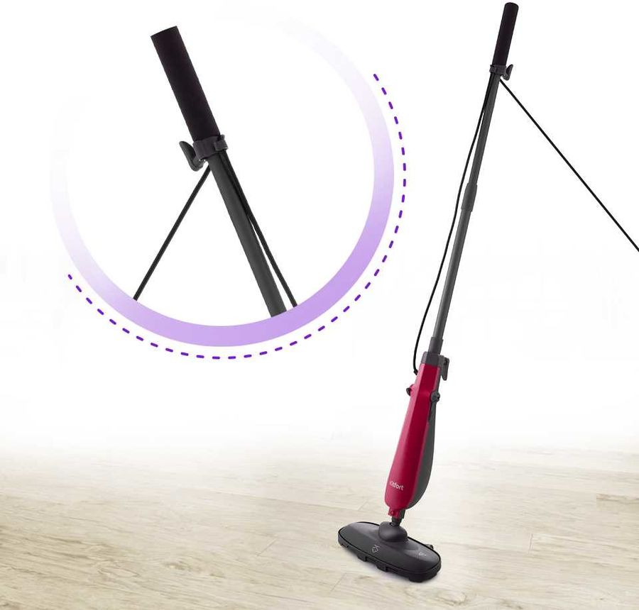 Описание: Принцип действия паровой швабры основан на воздействии горячего пара на загрязнения. Пар проникает внутрь загрязнения, размягчая и растворяя их, а затем с помощью тряпки или щётки частички грязи смываются. Телескопическая трубка позволяет отрегулировать швабру по высоте для удобного использования.