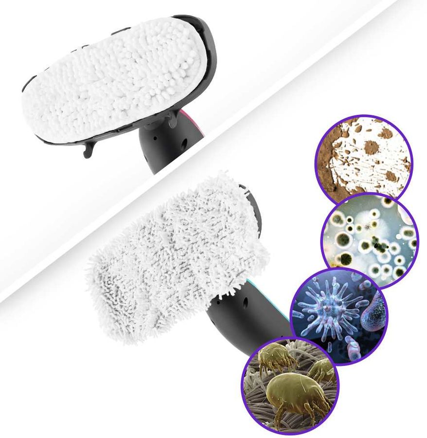 Особенности: Специальный держатель провода не мешает работе. Горячий пар эффективно устраняет патогенные микроорганизмы, бактерии, домашних клещей, плесень и грибки.
