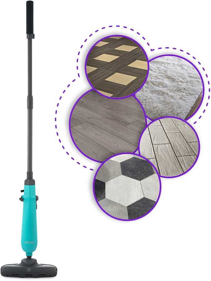 Описание: Принцип действия паровой швабры основан на воздействии горячего пара на загрязнения. Пар проникает внутрь загрязнения, размягчая и растворяя их, а затем с помощью тряпки или щётки частички грязи смываются. Телескопическая трубка позволяет отрегулировать швабру по высоте для удобного использования.