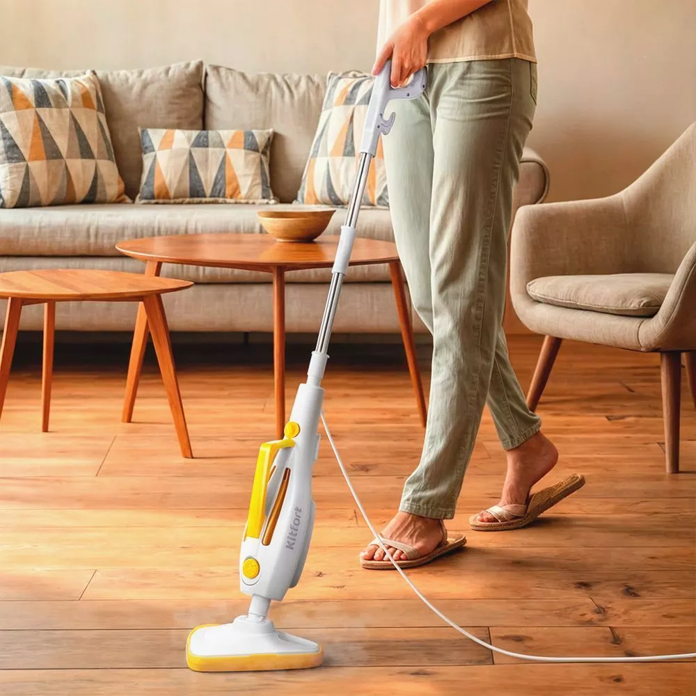 Паровая швабра станет универсальным помощником в доме. С её помощью можно легко отмыть окна, отпарить шторы и мягкую мебель. Уборку паровой шваброй можно проводить без чистящих средств, поэтому она станет идеальным решением уборки дома для аллергиков.