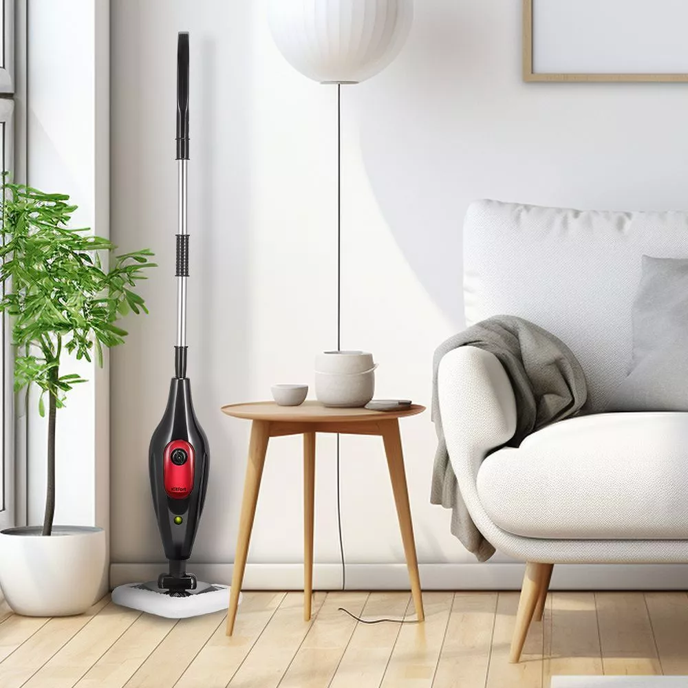 Для паровой швабры не нужны чистящие средства, поэтому она станет идеальным решением уборки дома. В комплекте предусмотрена рамка для ковра, которая обеспечивает лёгкое скольжение насадки для пола по ковру.