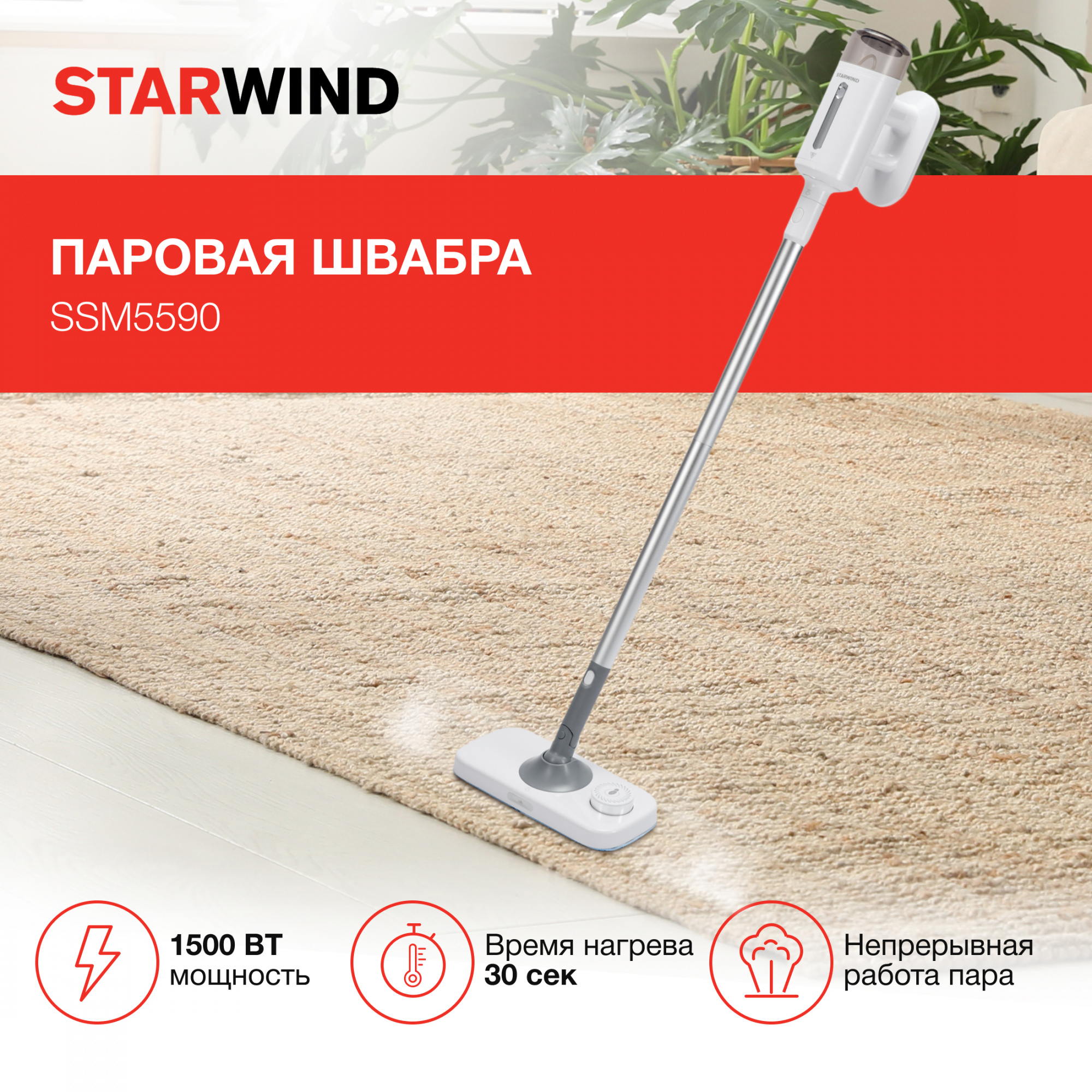 Швабра паровая Starwind SSM5590 белый/серый