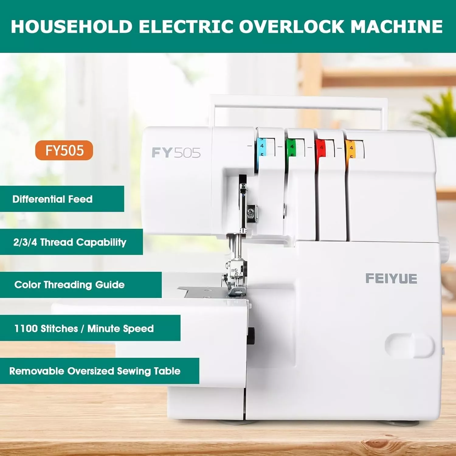 Оверлочная машина FEIYUE FY505 Serger с возможностью нарезания 2/3/4 нити, встроенным подолом, прочной металлической рамой для тяжелых условий эксплуатации, регулируемой дифференциальной подачей