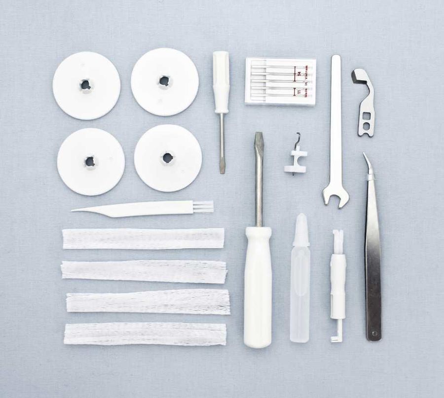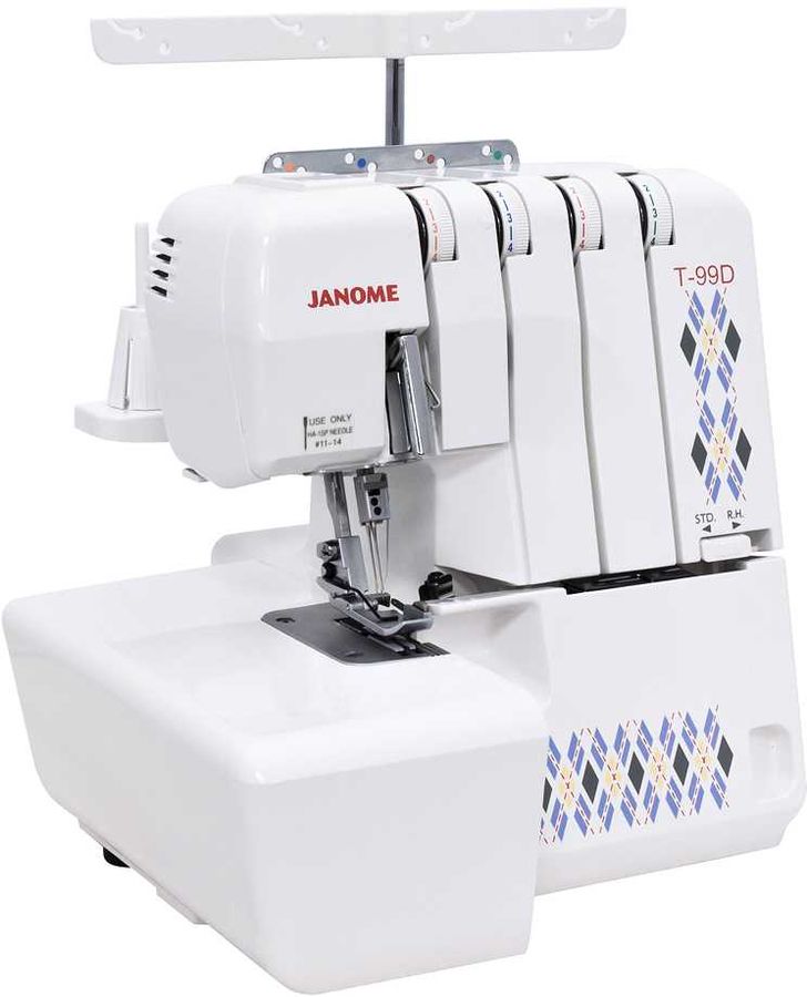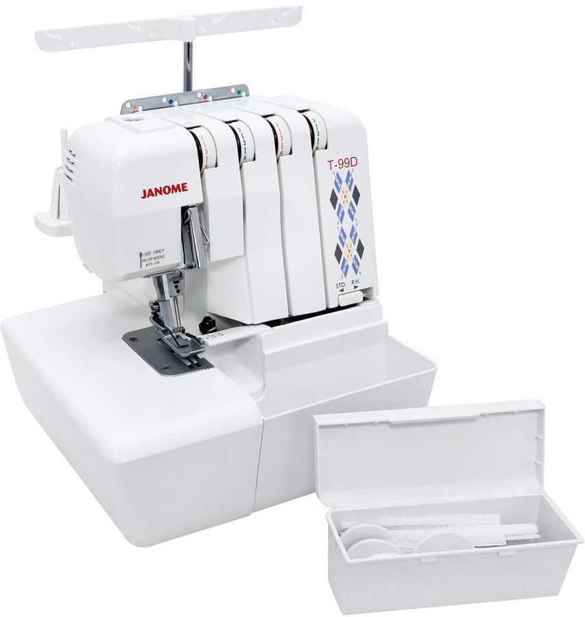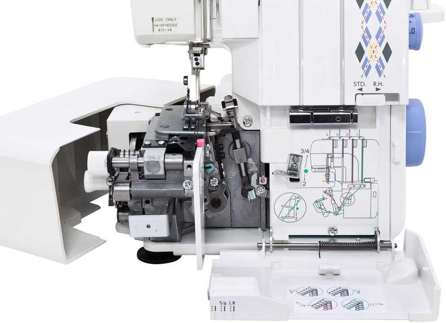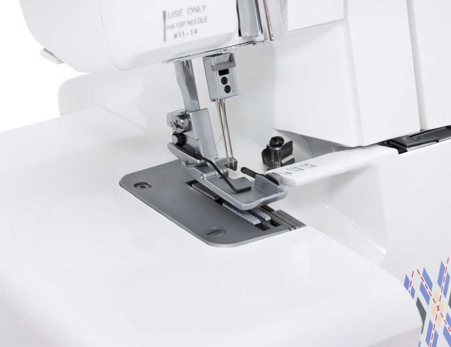количество нитей: 4; скорость шитья: 850стежков в минуту; ширина шва: 7 мм; длина стежка: 5 мм; отделение для сбора обрезков; освещение