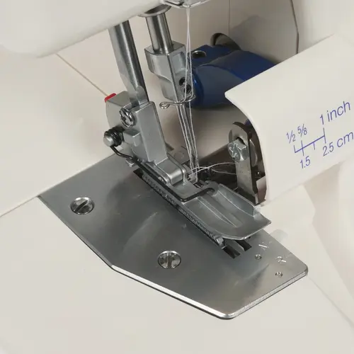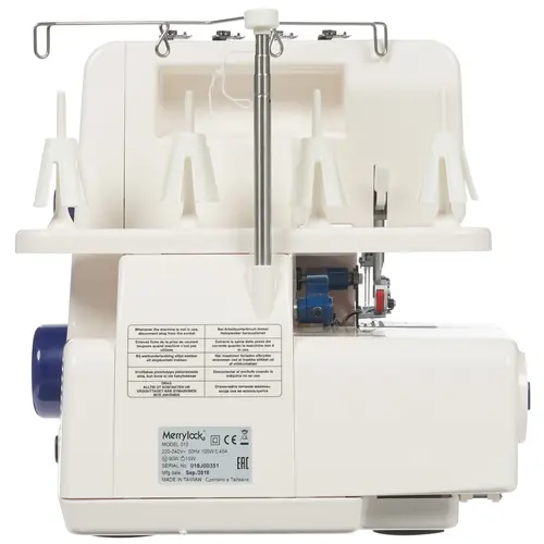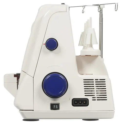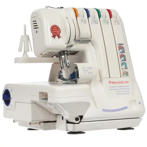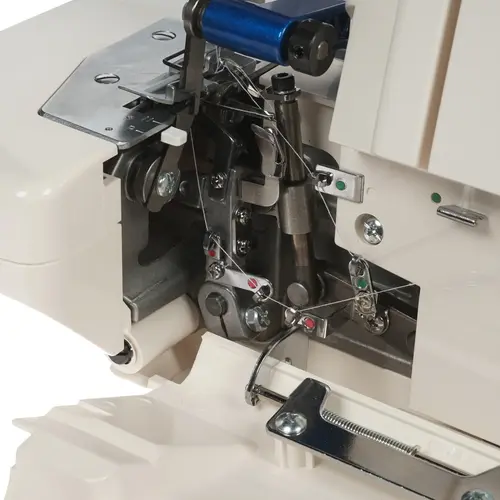 Высота подъема лапки в оверлоке ограничивается 6 мм, что позволит обрабатывать даже толстую ткань. При этом можно вручную регулировать прижим ткани. Цветная маркировка дает возможность правильно установить и заправить разноцветные нитки, чтобы не возникло путаницы. Из двух приводов ножа (верхний и нижний) легко выбрать наиболее удобный. За ненадобностью нож можно отключить. Дифференциальная подача ткани обеспечивает независимую регулировку скорости переднего и заднего транспортера.