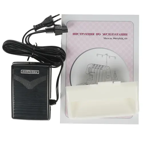 диски от роспуска ниток, документация, масленка, набор игл, отвертка, сетка, шестигранный ключ, щеточка