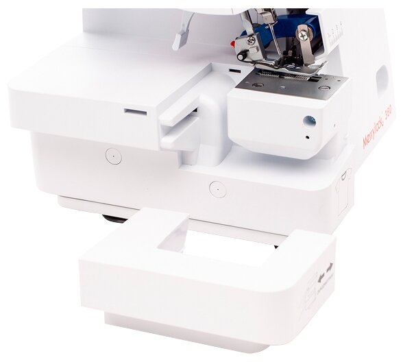 Имеет в своем арсенале 15 операций, которые отвечают за создание роликовых, цепных, трикотажных, плоских и прочих видов швов. Максимальная скорость его работы достигает 1000 стежков в минуту, а потребляемая мощность не превышает 105 Вт, что довольно экономно. Сделать процесс шитья более комфортным и приятным помогают яркая LED-подсветка рабочей зоны, линейка, нанесенная на переднюю панель корпуса, помощник заправщика нижнего петлителя и встроенный мусоросборник.
