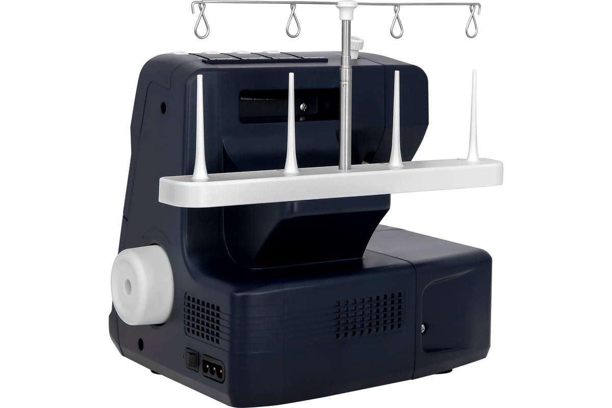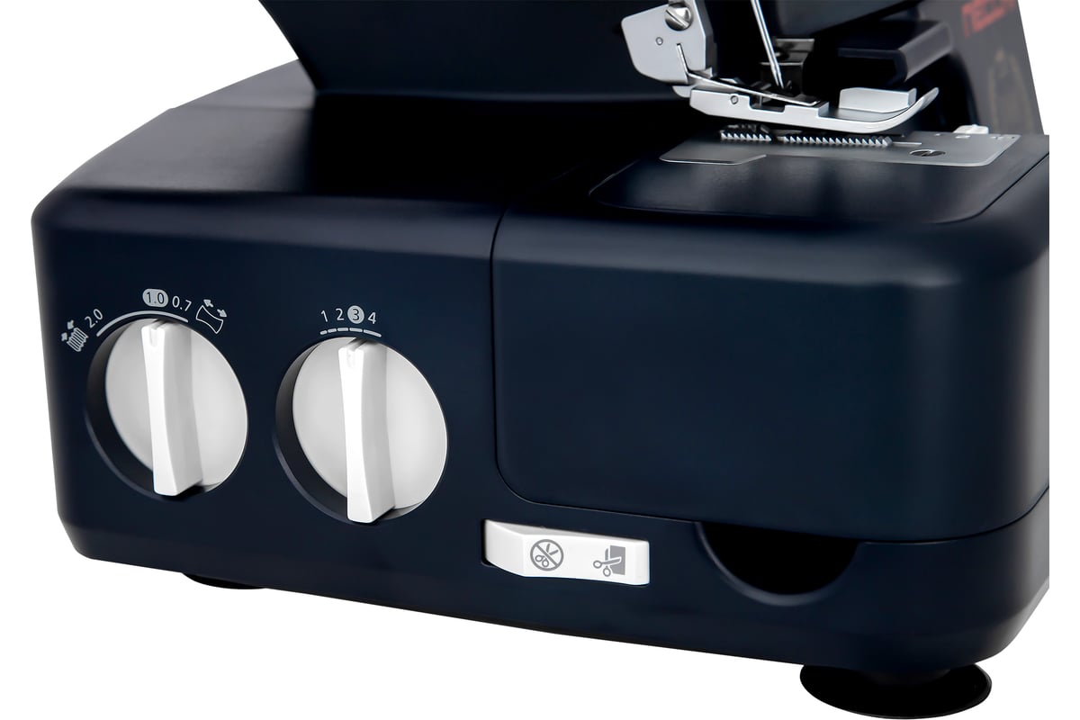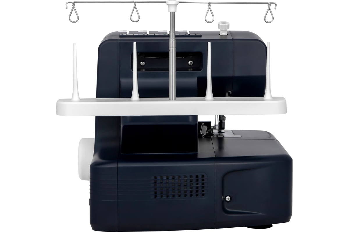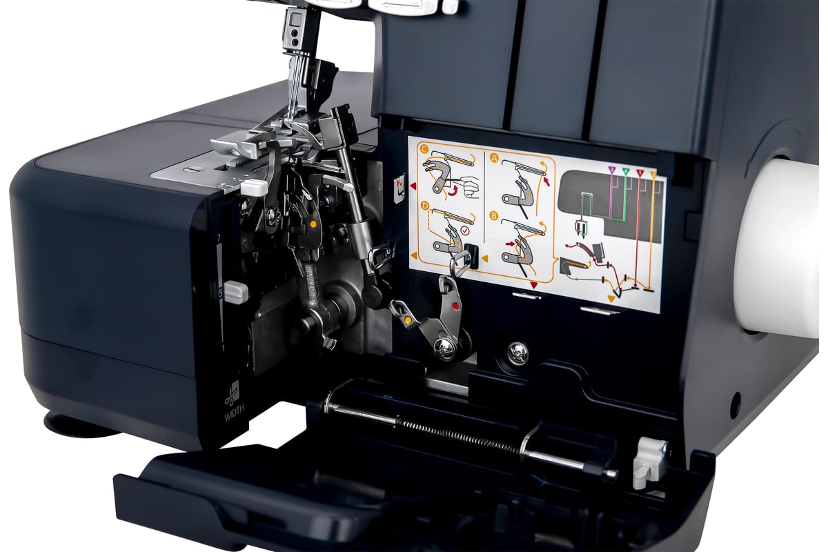 Заправка оверлока нитями упрощена цветными метками на корпусе, исключающими ошибки и неточности. Справочная информация содержится, также в цветной диаграмме на внутренней поверхности передней крышки, что очень удобно и позволяет не иметь постоянно инструкцию под рукой.