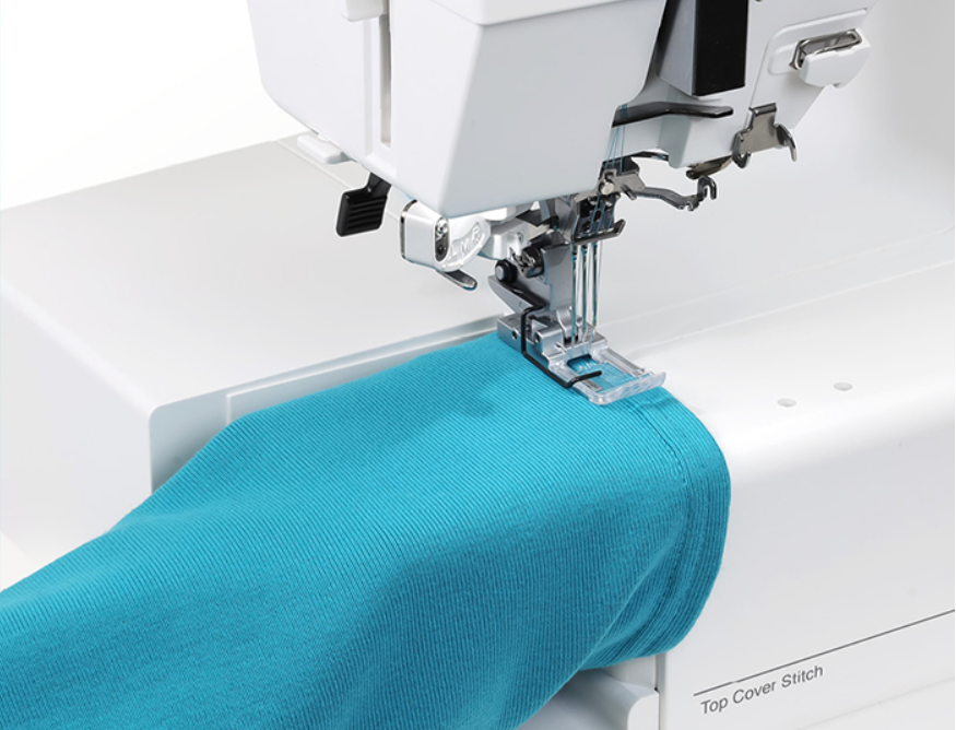Cover Pro 3000 Professional оснащена встроенным направителем для того, чтобы Вы могли без труда создавать плоские швы с верхним застилом профессионального качества. Еще одна важная новация в сравнении с предыдущими моделями распошивальных машин серии CoverPro - усовершенствованная система контроля натяжения (TLC), сглаживающая натяжение нитей при переходе от плотного трикотажа к тонкому.