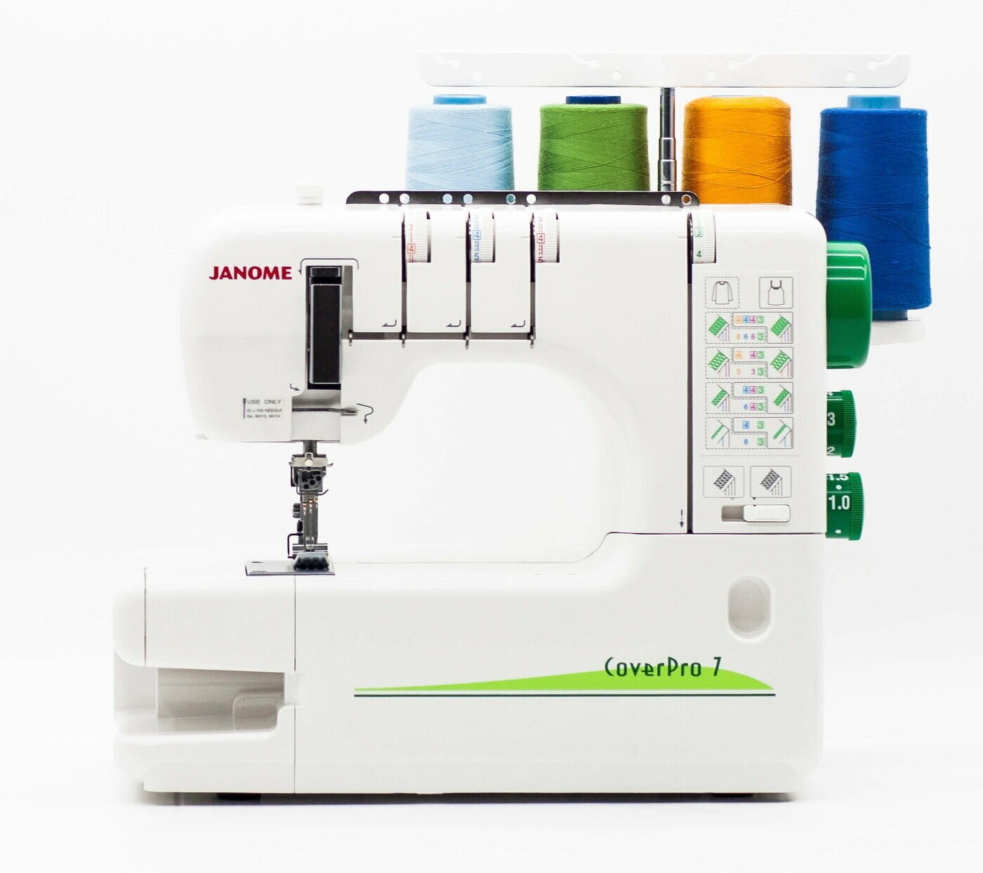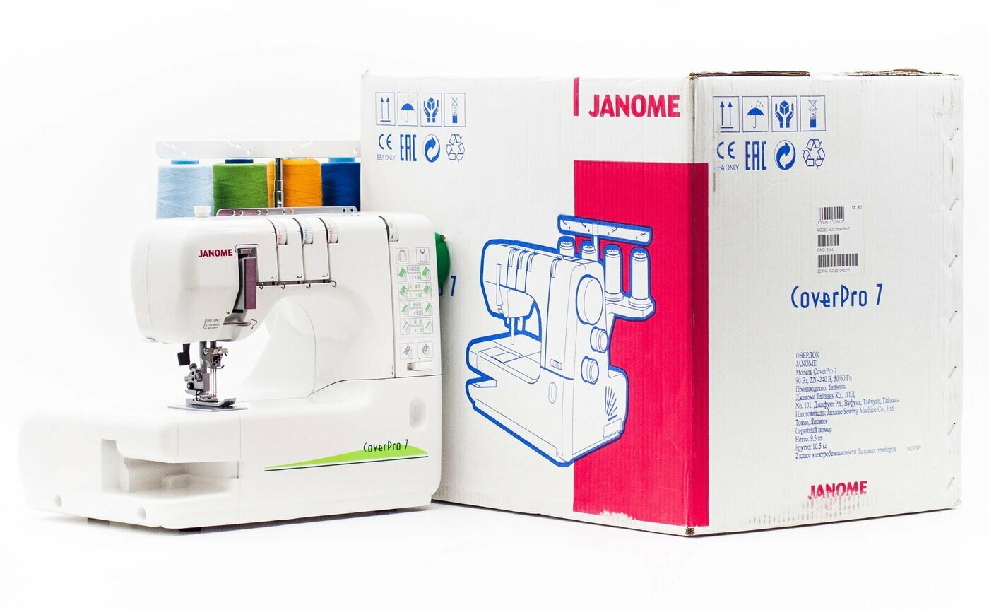 Распошивальная машина Janome CoverPro 7 - это распошивальная плоскошовная машина, выполняющая узкое целенаправленное действие, а именно цепной двухниточный шов произведенный с помощью одной иглы, узкий трехниточный двухигольный плоский шов, широкий двухигольный трехниточный плоский шов и трехигольный плоский шов четырехниточный. Для того, чтобы качество строчки оставило довольным даже самых требовательных мастеров, в машине предусмотрена - дифференциальная подача ткани (такая функция, предназначена для эластичных материалов) и не менее полезная характеристика - регулировка прижима лапки (такая технология положительно влияет на работу со сложными тканями).