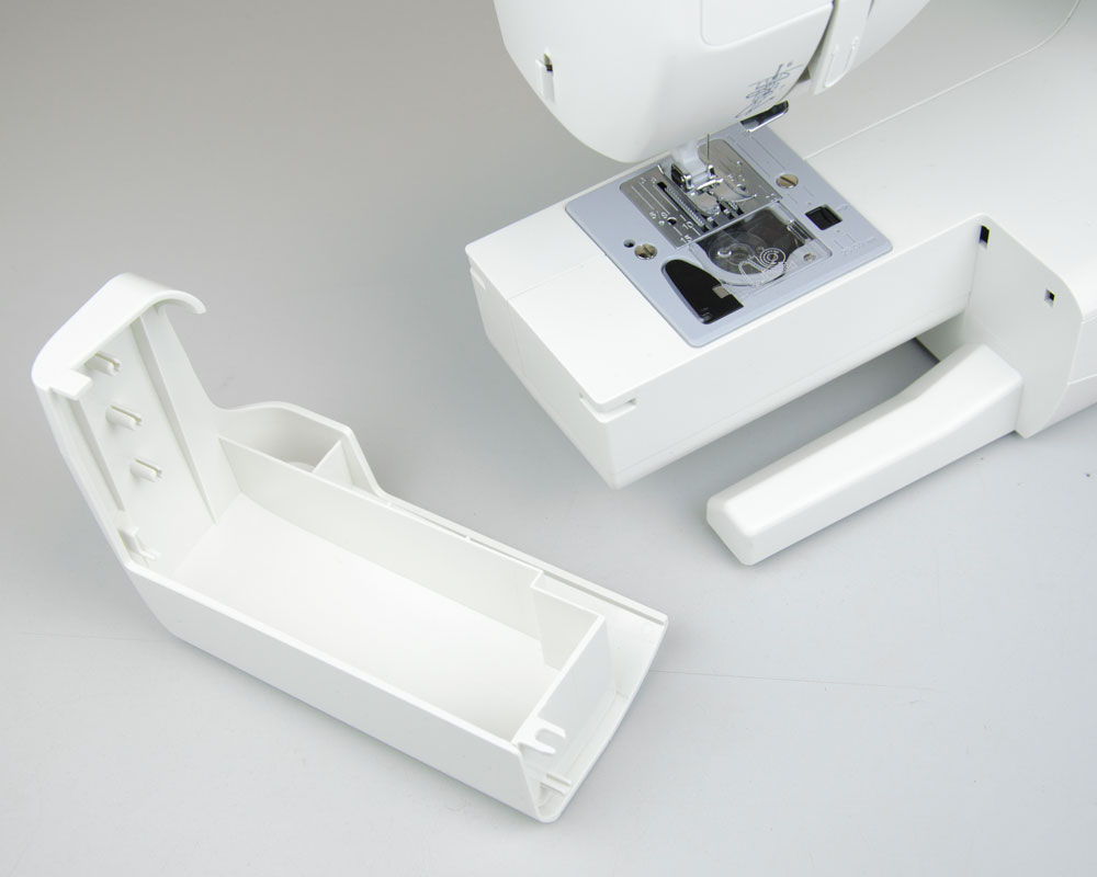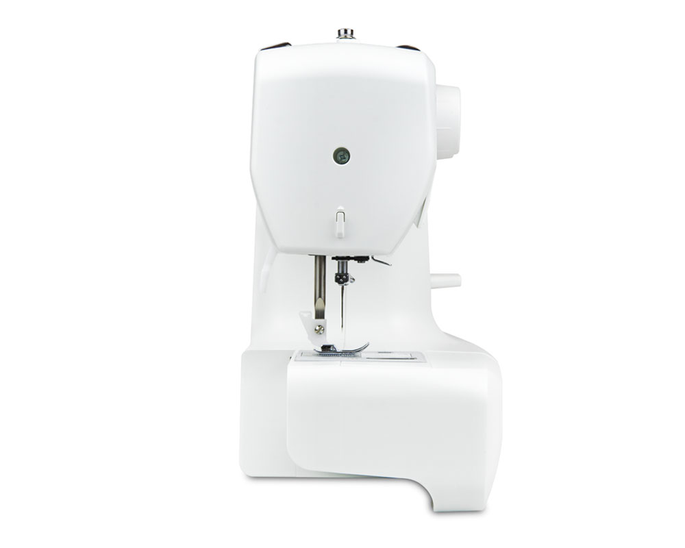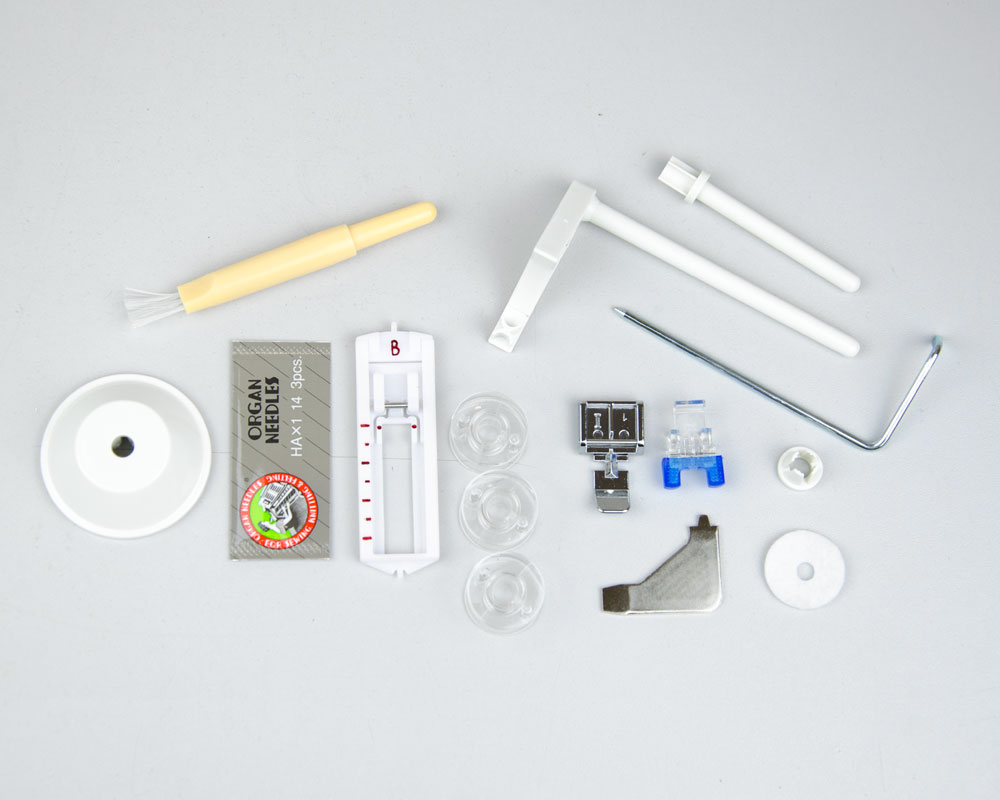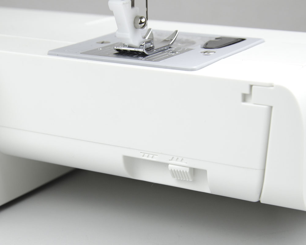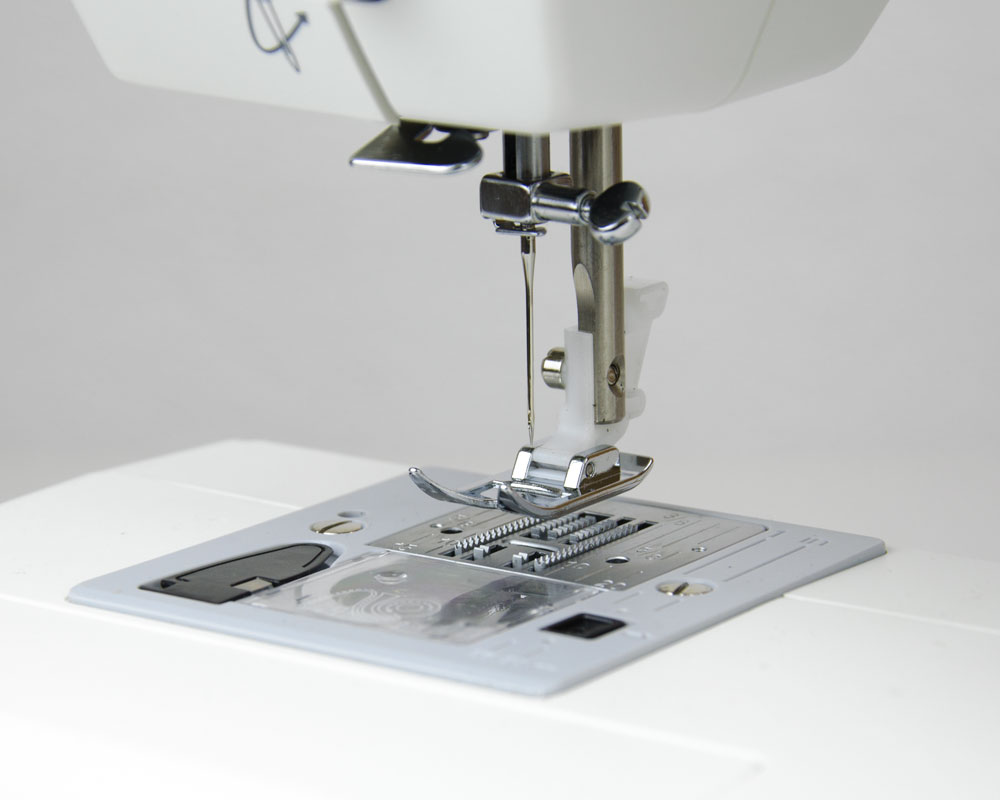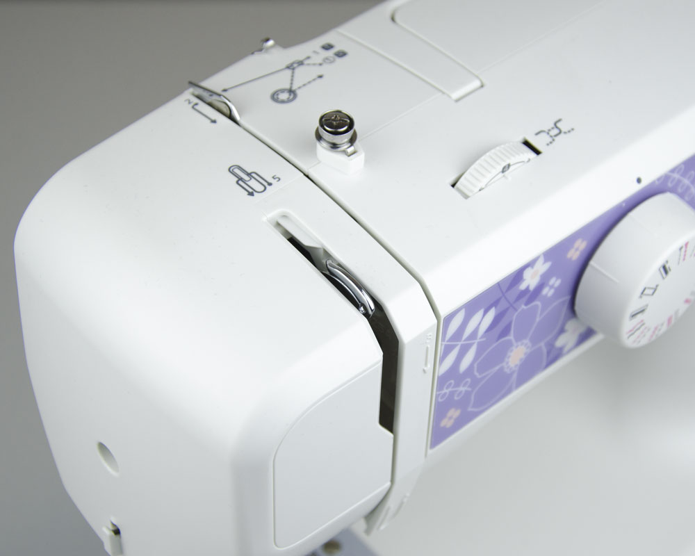 Функция петля-полуавтомат дает возможность выполнять бельевые петли в три приема. Регулировка ширины и длины стежка расширит разнообразие шва при шитье. Возможность опускать зубчатую рейку позволит использовать машину в режиме штопки или стежки. В комплекте с машиной идет набор лапок, шпули, иглы и направляющая шитья.