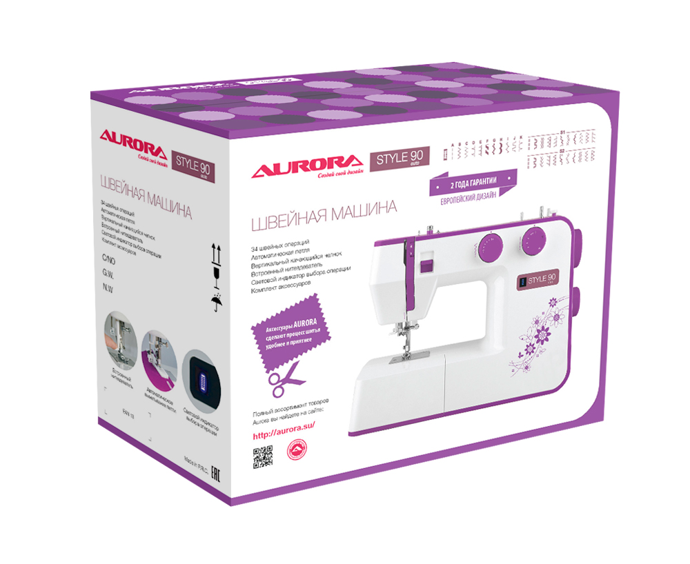 Швейная машина Aurora STYLE 90 - электромеханическая модель, обладающая набором из 32-x швейных операций. Вертикальный классический челнок, автоматическая петля, экономичная светодиодная подсветка рабочей области - добавят удобство в работе с данной моделью. Рабочие, оверлочные, трикотажные и декоративные строчки помогут шить и декорировать ваши изделия.