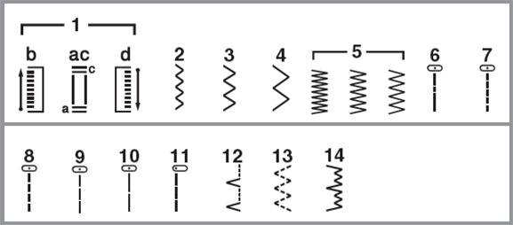 Виды строчек прямая, зигзаг, зигзаг пунктиром, потайной шов, потайной шов эластичный, трикотажный, эластичные (трикотажные)