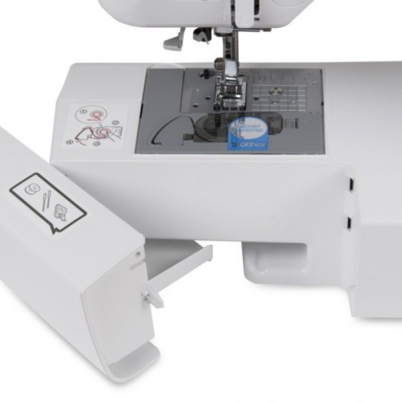 Функции и особенности кнопка/клавиша реверса, горизонтальный позиционер, шитье двойной иглой, рукавная платформа (свободный рукав), встроенное отделение для хранения аксессуаров, мягкий чехол