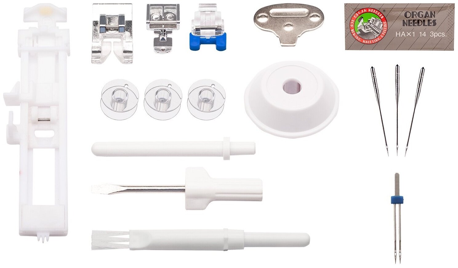 Вид строчки: Декоративная эластичная строчка, Зигзаг, Прямая строчка, Эластичная потайная строчка