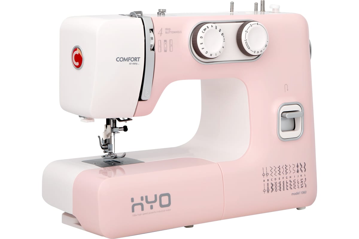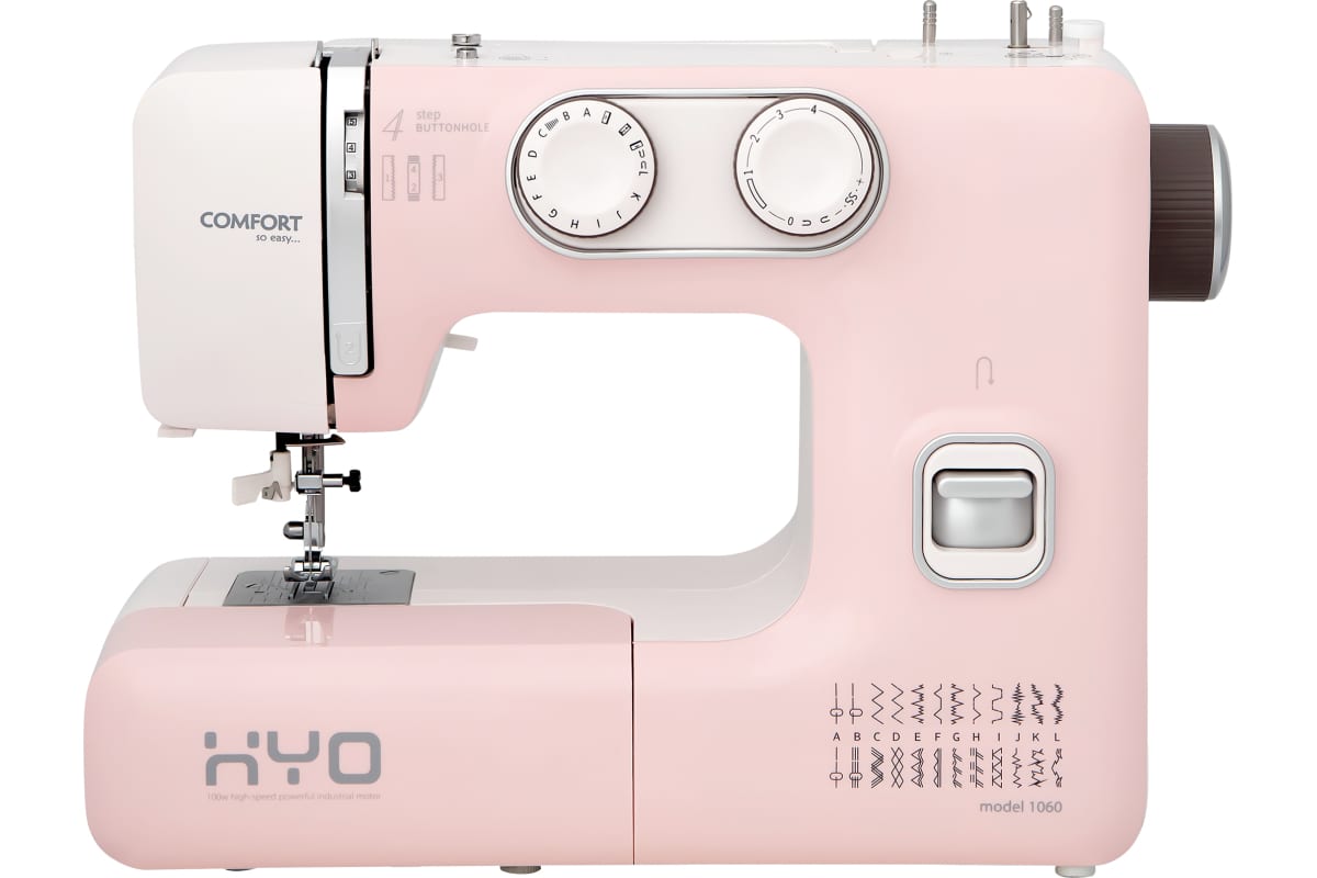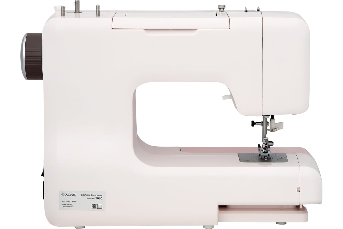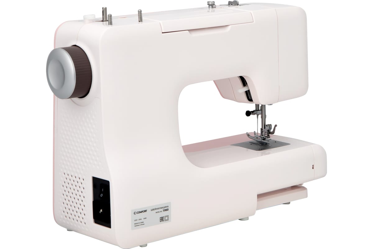 Швейная машина розового цвета идет в комплекте с четырьмя лапками и тремя шпульками. Длина стежка регулируется от 1 до 4 мм. Габариты модели — 29х37х15 см. Вес изделия — 6 кг. Присутствует светодиодная подсветка рабочей зоны. Скорость шитья достигает 650 стежков в минуту. Корпус сделан из прочного легкого пластика, оснащен нитеобрезателем и удобной ручкой для переноски. Прорезиненные ножки не скользят по любой поверхности. Мощность прибора — 0,1 кВт. Вертикальный челнок сделан из прочного металла. Длина отсоединяемого шнура — 1,4 м.