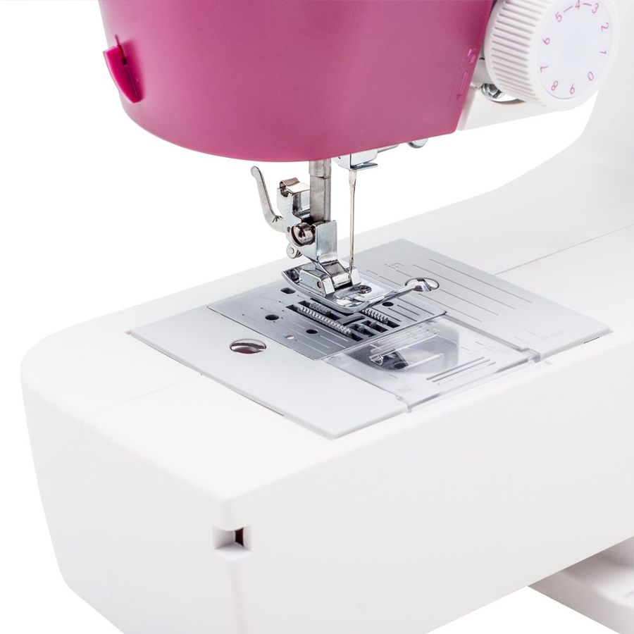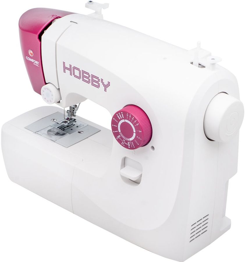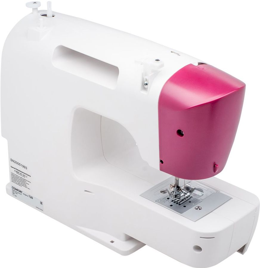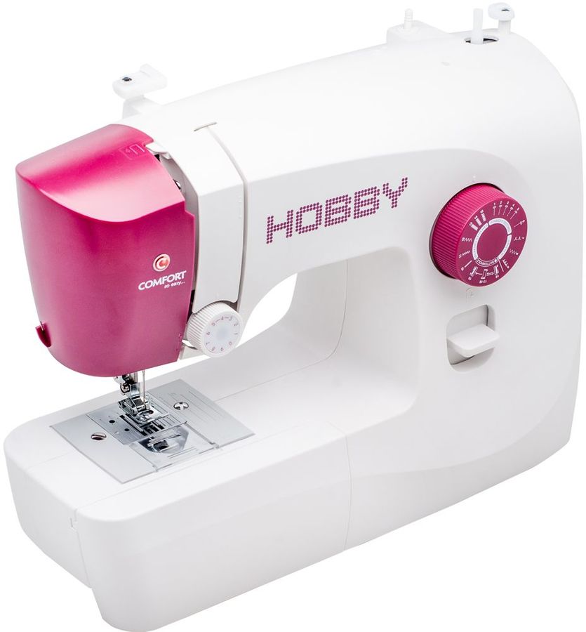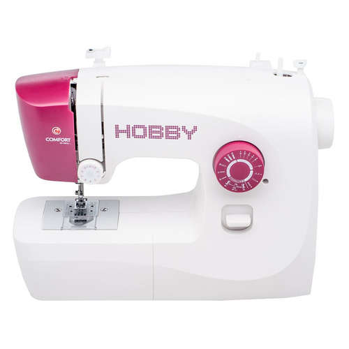 электромеханическая, кол-во строчек 19, челнок: горизонтальный, выполнение петель: полуавтоматическое, рукавная платформа, реверс, подсветка, ручка для переноски