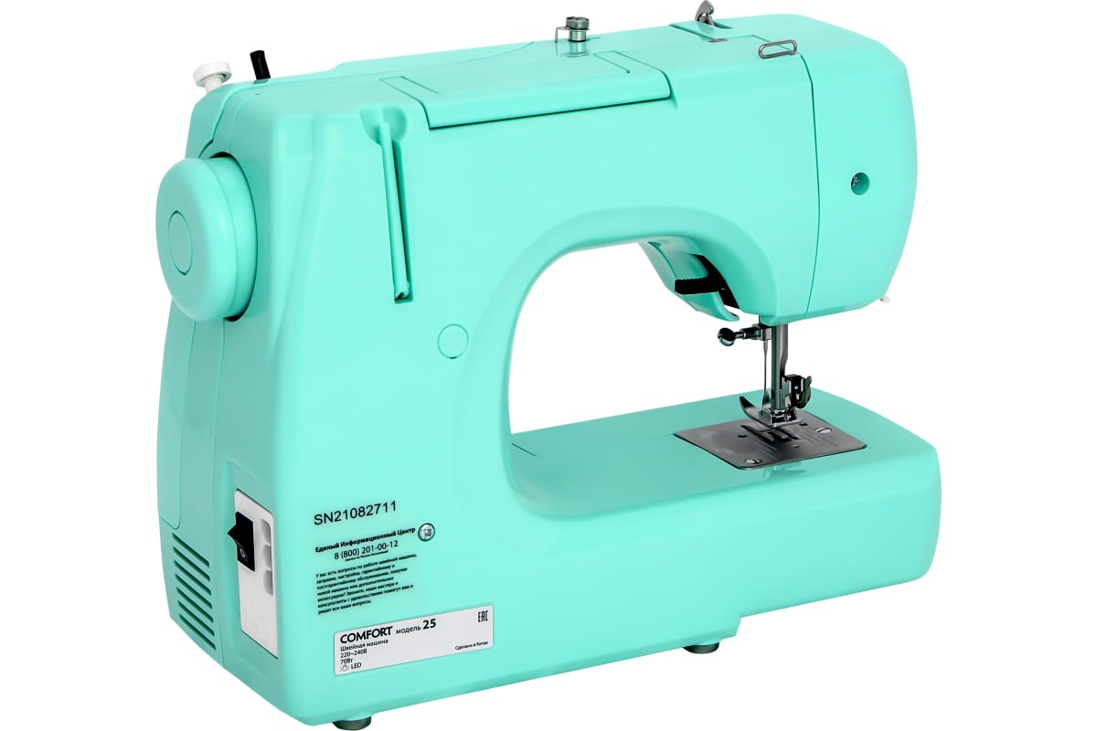 Дополнительное преимущество в том, что размер машинки составляет 3/4 от размеров полноразмерных моделей, а челночный узел стандартный. Соответственно машинка шьет так же, как взрослые модификации, а по габаритам спокойно умещается на полке любого шкафа. Рекомендуется для простых швейных работ по дому.