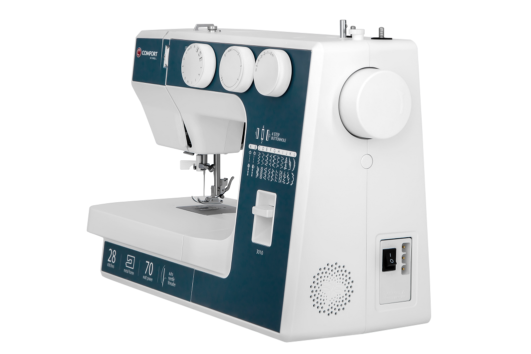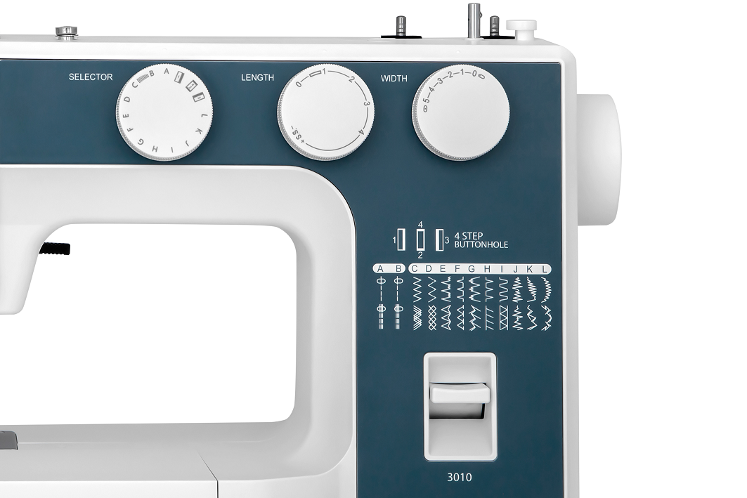 скорость шитья (с помощью педали), натяжение нитей, давление лапки на ткань
