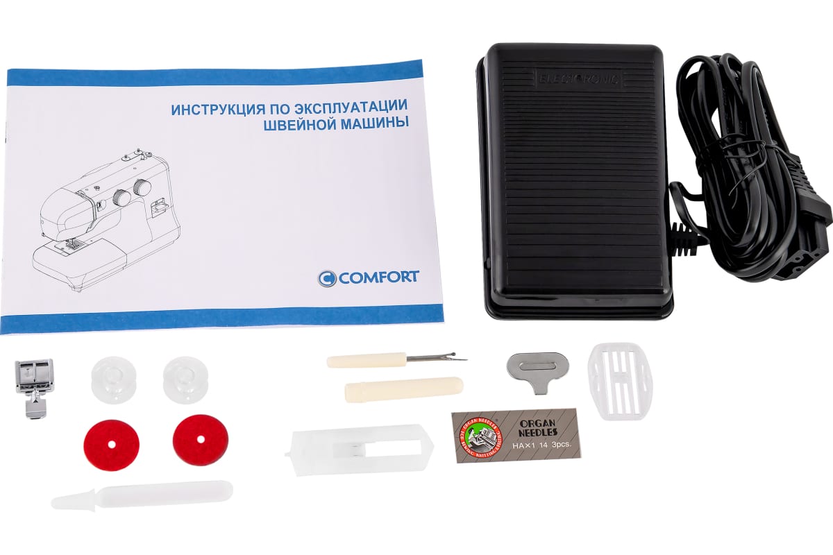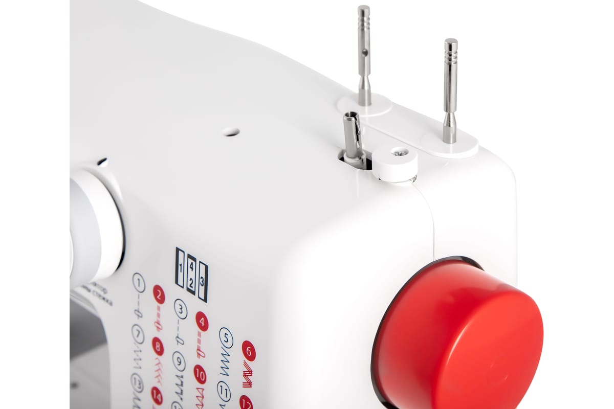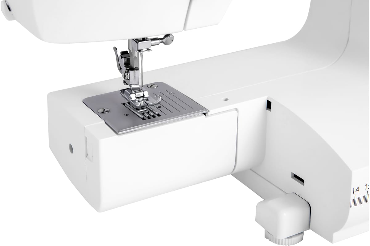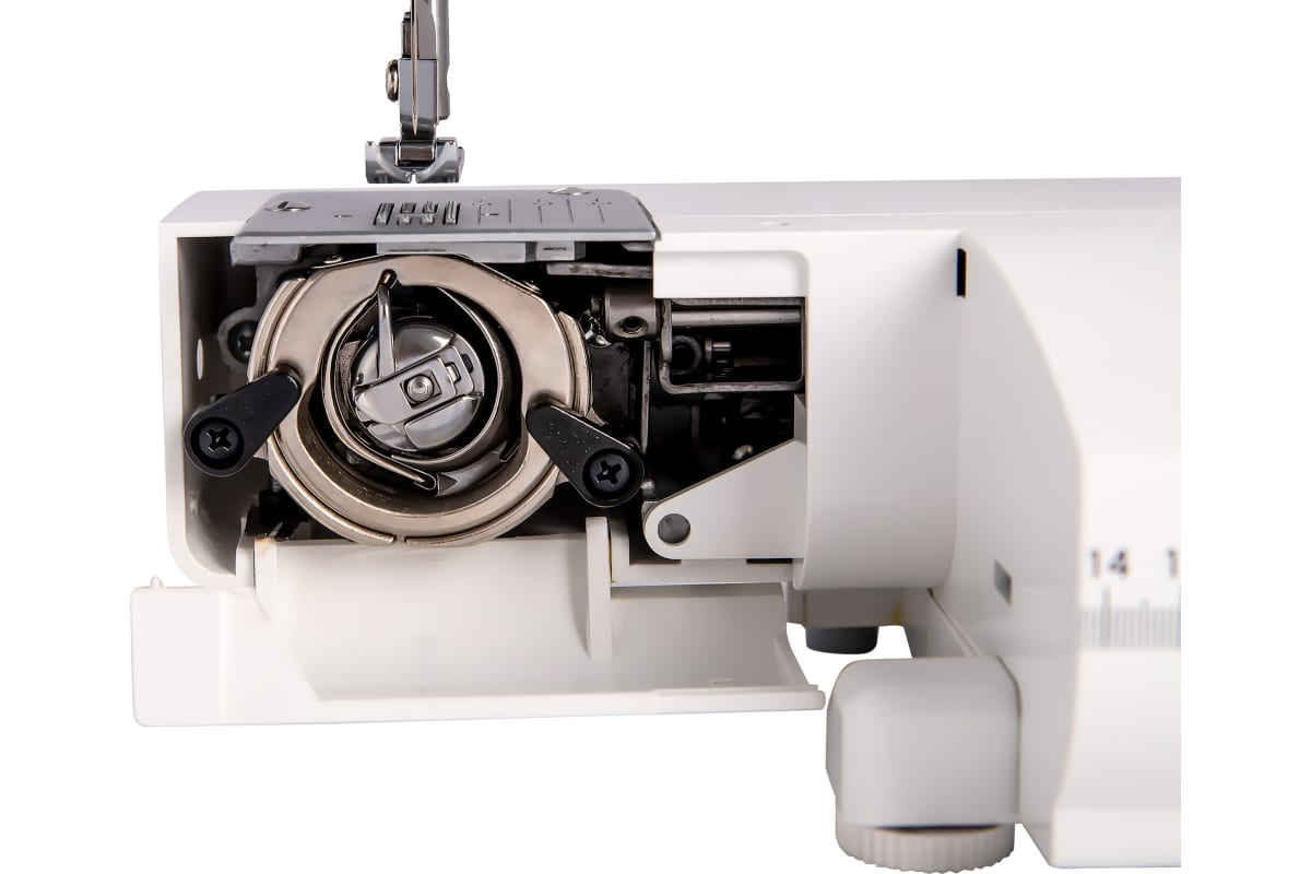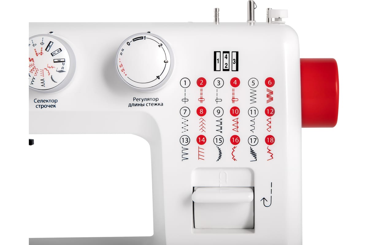 Модель выпускается на новом современном заводе, предусматривает в своей конструкции качественно изготовленные металлические детали челночного устройства, мягкое переключение селекторов строчки и светодиодное освещение рабочей зоны.