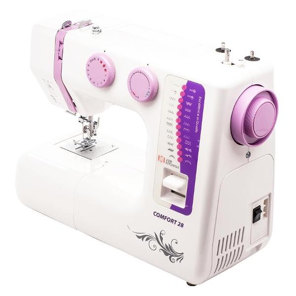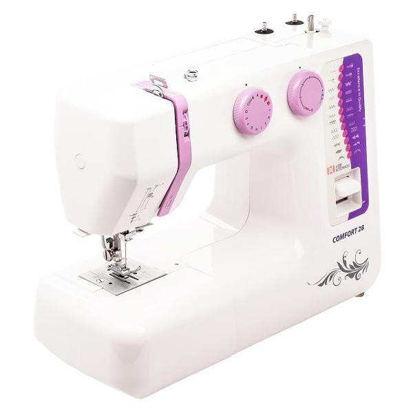 Швейная машина Comfort 28, белая — модель электромеханического типа, которая может работать с любыми видами тканей. Лампа поднимается на высоту до 7 мм, длина стежка регулируется от 1 мм до 4 мм. Максимальная ширина зигзага — 4 мм.