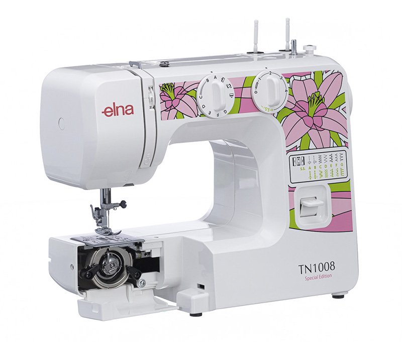 Если вы хотите научиться шить, то электромеханическая швейная машина Elna TN1008 создана специально для вас. Управление начинается с простой схемой заправки. Следите за указателями на корпусе машины. 15 рабочих швейных операции справляются со стачиванием каждой части изделия, оверлочные обрабатывают края, зигзаг позволяет шить из трикотажа. Украшайте одежду пуговицами, ведь петли выполняются в полуавтоматическом режиме за 4 шага. Клавиша реверс поможет заштопать любимую вещь или быстро поставит закрепку. Дополнительный подъём лапки создаёт условия для работы с грубыми, плотными тканями: подогнать низ брюк под размер, укоротить шторы — под силу Elna TN1008. Остановите выбор на Elna TN1008 и получите основы швейного дела и опыт надёжного помощника.