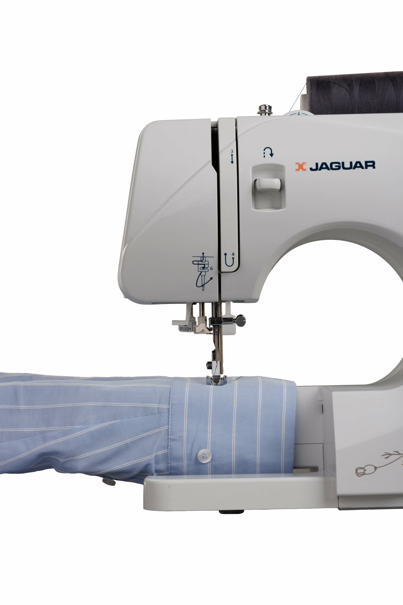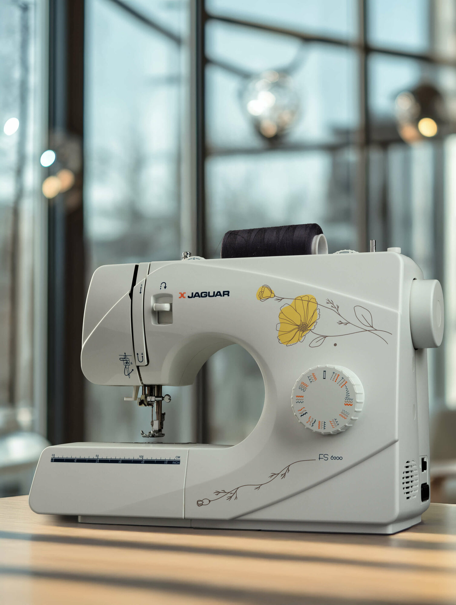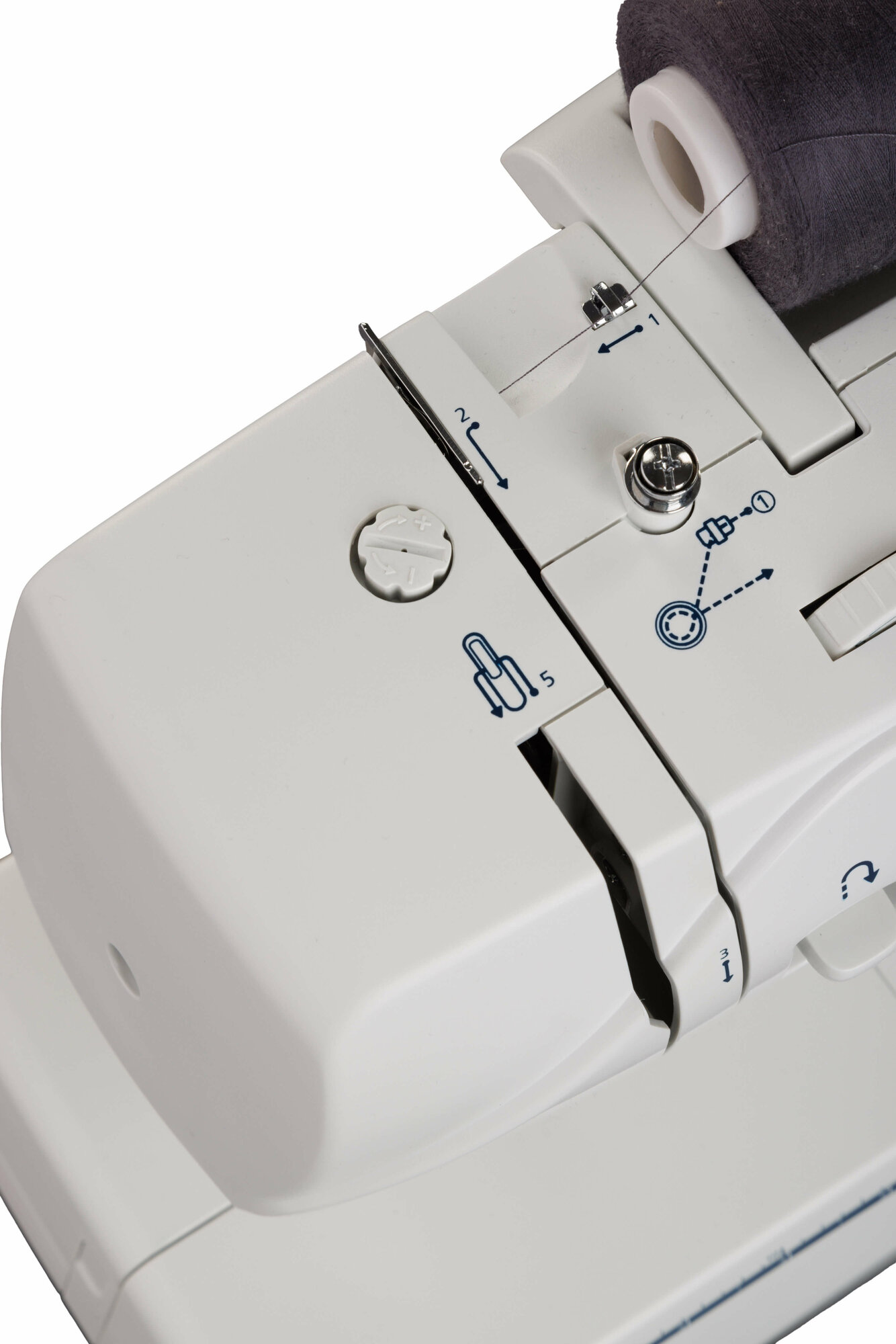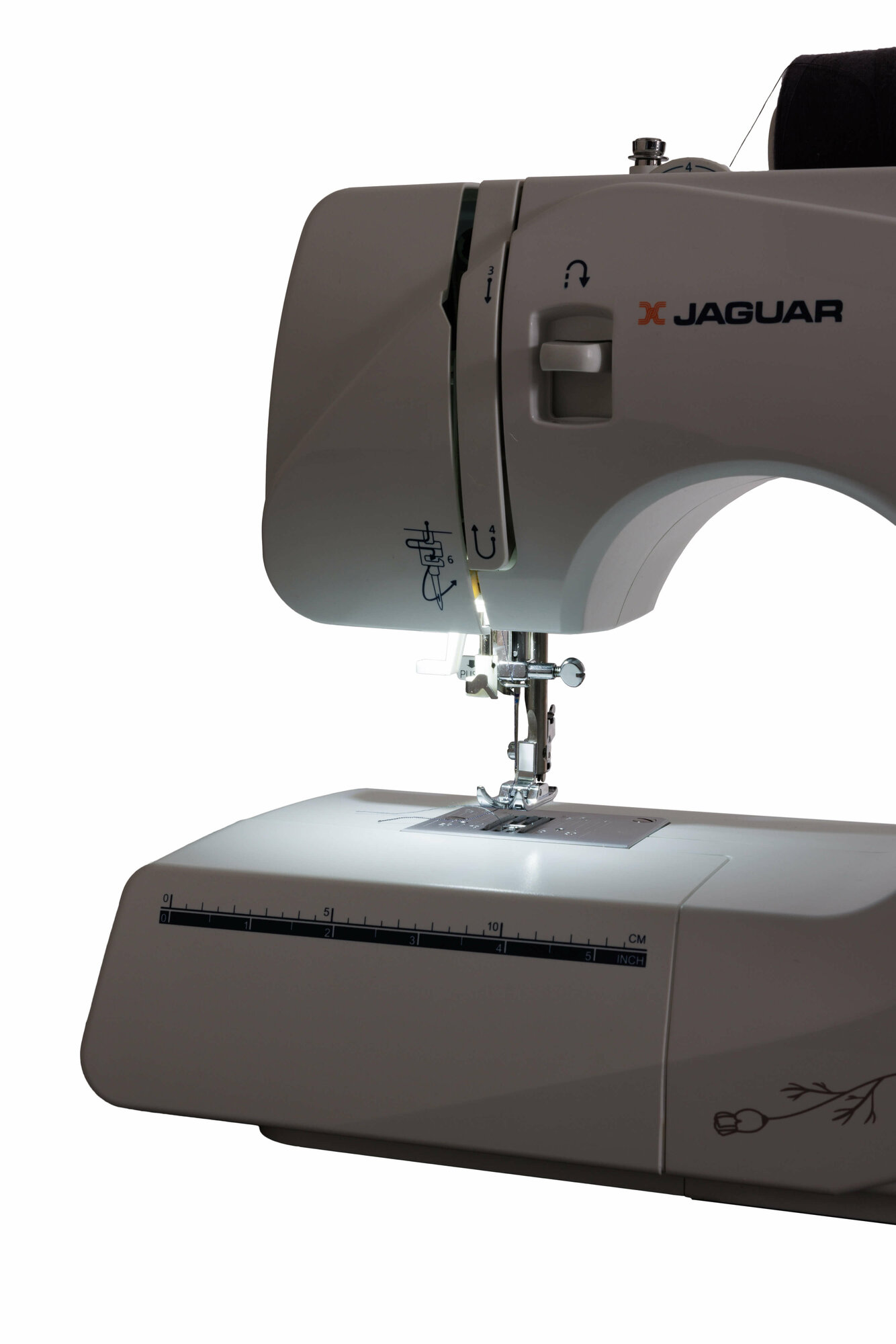 Функциональные особенности швейного оборудования: Линейка на корпусе, Подсветка рабочей зоны, Реверс, Регулировка скорости шитья, Регулятор давления лапки на ткань, Регулятор длины стежка, Шитье двойной иглой