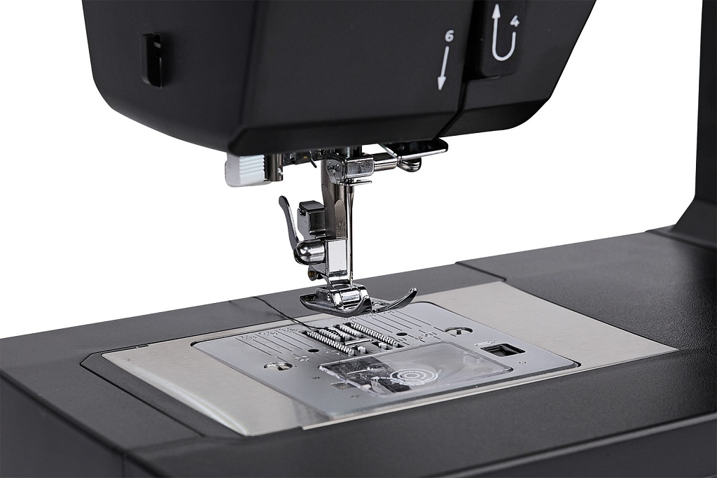В работе со сложными толстыми швами, такими как боковые швы (брючин), предусмотрена специальная пластина, которая устанавливается под основную лапку. Она компенсирует перепады толщины материала и предотвращает пропуски стежков.
