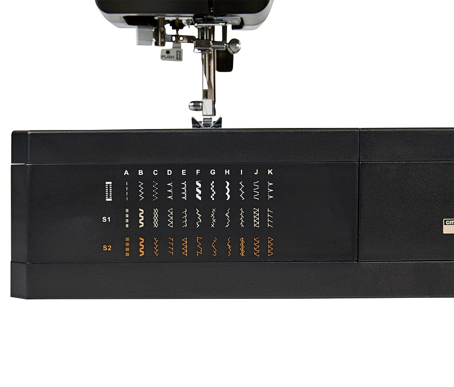 С помощью регулятора скорости шитья можно установить максимальную скорость 800 ст./мин. Кнопкой устанавливается положение иглы: при окончании шитья игла может останавливаться в нижнем положении и удерживать ткань. Используя кнопку Старт/Стоп, можно уверенно шить без педали.