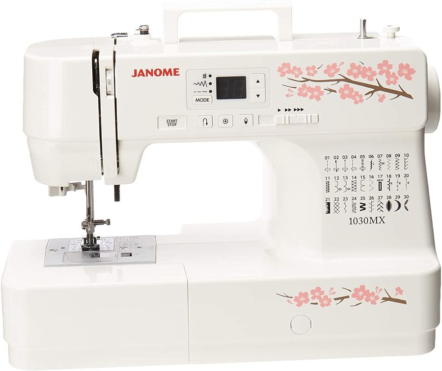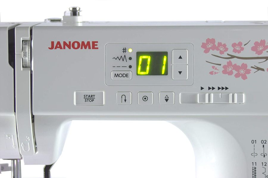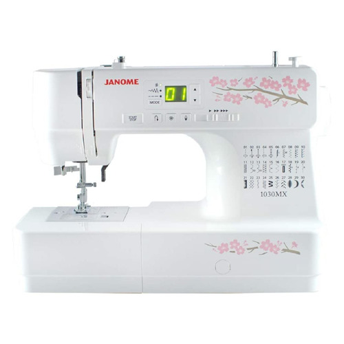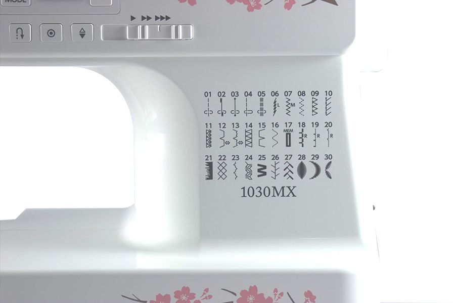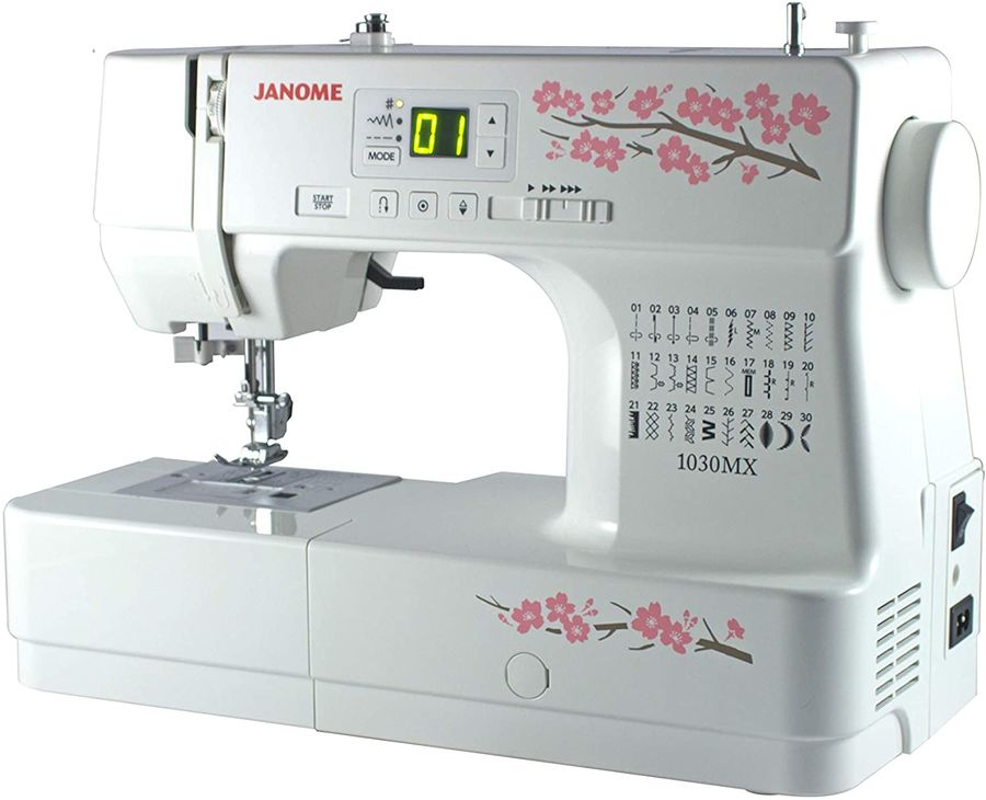электромеханическая, кол-во строчек 30, челнок: горизонтальный вращающийся, выполнение петель: автоматическое, нитевдеватель, подсветка, ручка для переноски