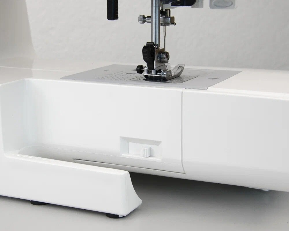 автоматическое закрепление строчки, кнопка реверса, макси-узоры, отключение механизма подачи ткани, переключатель положения иглы (верх/низ), регулировка давления лапки на ткань, шитье без педали