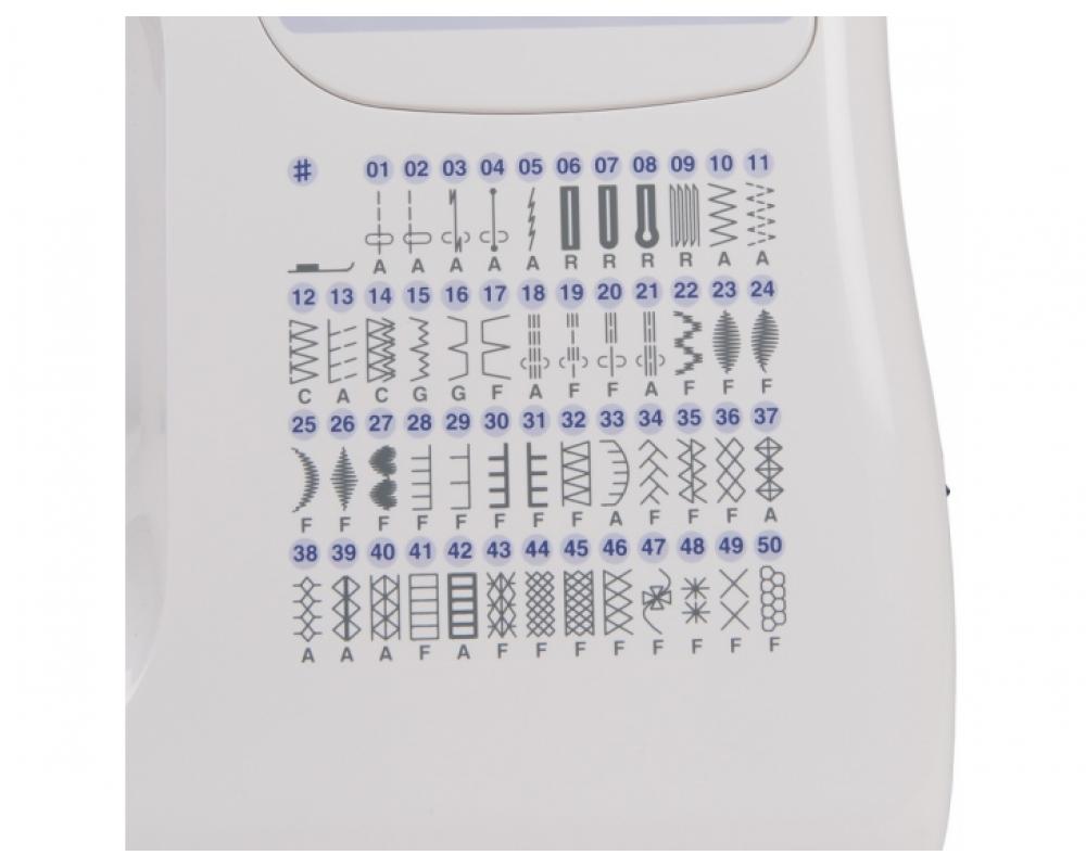 Виды строчек прямая, прямая укрепленная 3х, зигзаг, зигзаг укрепленный 3х, зигзаг пунктиром, оверлочная открытая, оверлочная закрытая, потайной шов, потайной шов эластичный, трикотажный, сотовая, эластичные (трикотажные), атласные сатиновые, декоративные, атласные декоративные, крестообразные, лоскутное шитье, квилтинг, пэчворк