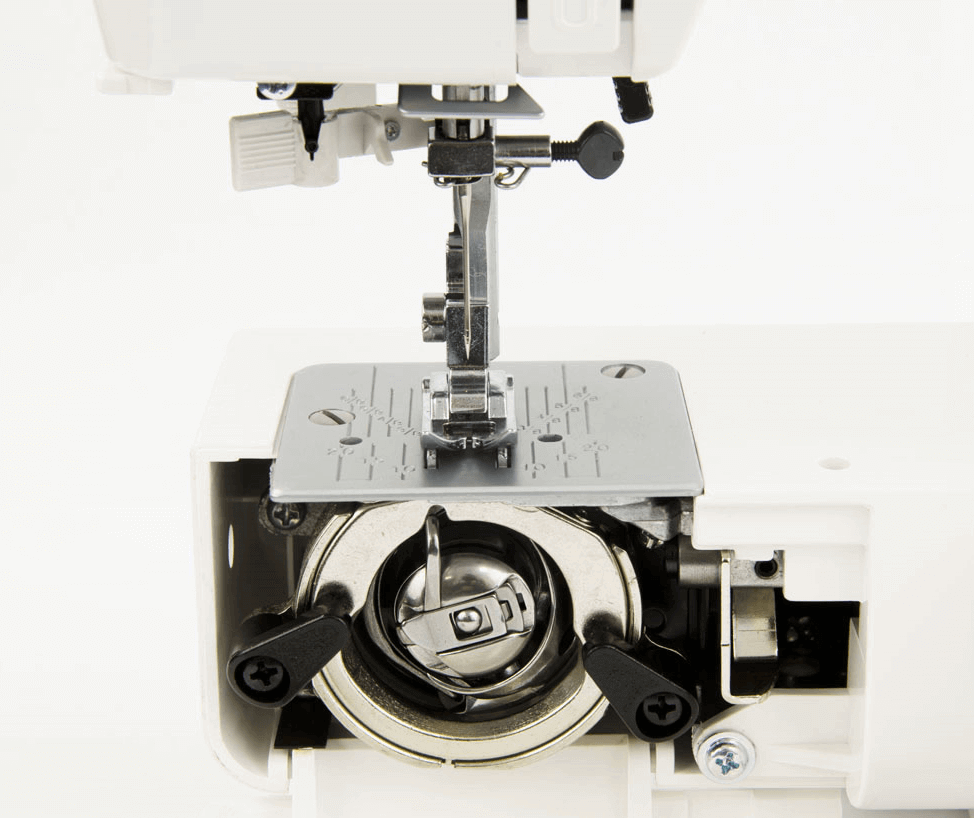 Швейная машина обладает выразительным дизайном и простой электромеханической конструкцией. В устройстве предусмотрен вертикальный челнок, ручной нитеобрезыватель, нитевдеватель, нижний четырехполосный транспортер. Кроме того, здесь есть облегчающая вшивание рукавов и брючных штанин free-arm вставка, с удобным разъемным механизмом, присутствует индивидуальное освещение станины. Предельная развиваемая скорость шитья – 400 ст/мин.