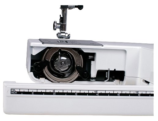 металлический корпус; прозрачная лапка, направитель для потайного шва