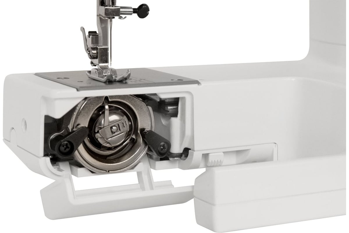 Электромеханическая швейная машина имеет все необходимые швейные операции для воплощения творческих идей, включая петлю в автоматическом режиме. С помощью регулятора давления лапки на ткань можно без труда работать с разным диапазоном ткани. Модель имеет металлическую станину, придающую дополнительную устойчивость и встроенный нитевдеватель, чтобы с лёгкостью вдеть нить в иглу. Для удобства шитья на панель нанесена разметочная линейка в сантиметрах и дюймах. Janome RS2019s будет отличным выбором и для опытных портних, и для новичков, желающих приобщиться к миру шитья.