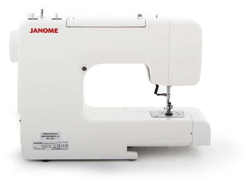 машина, лапка универсальная (зиг-заг) - установлена лапка для выметывания полуавтоматической петли, лапка для потайного шва, лапка для вшивания молнии (односторонняя), шпули прозрачные (3 шт.), вспарыватель, инструкция, педаль