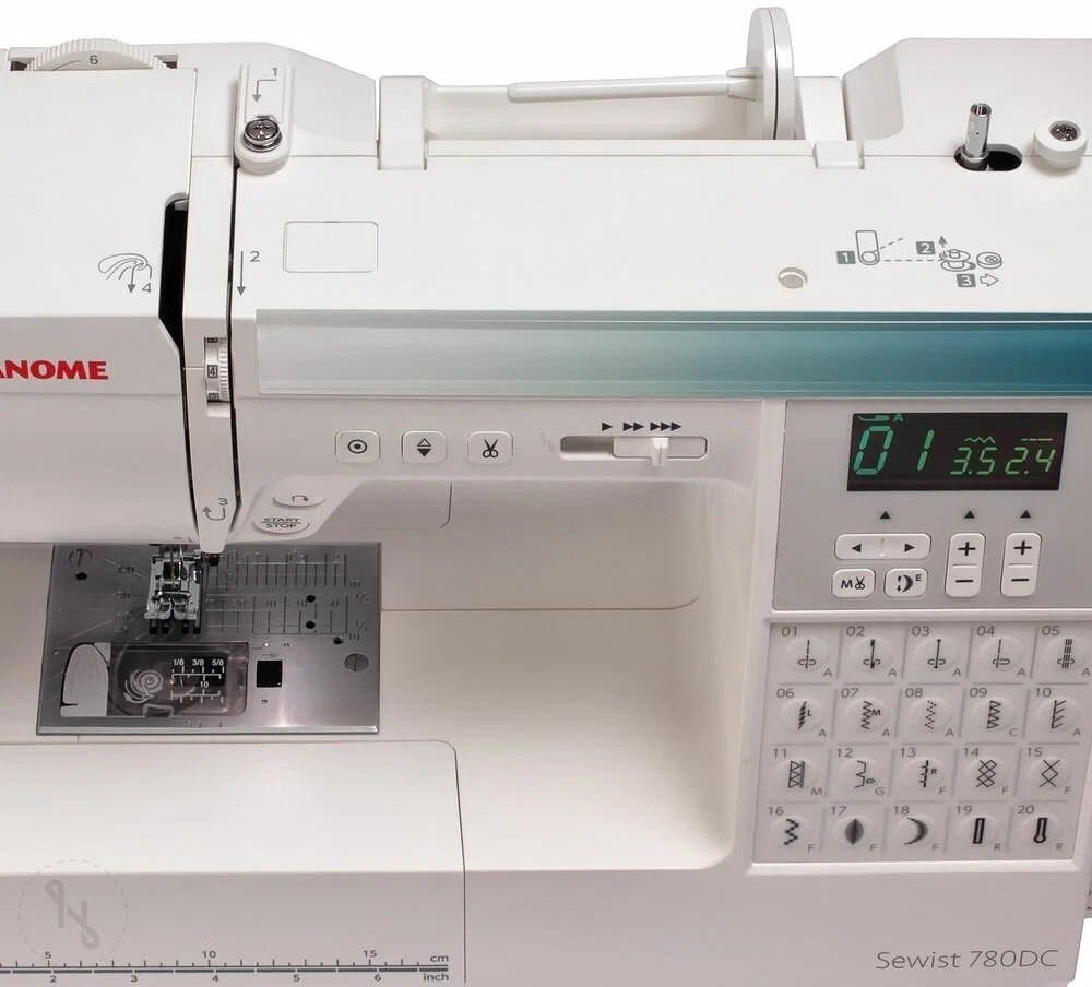 автоматический обрезатель нити, кнопка реверса, регулировка давления лапки на ткань, шитье без педали, электронный стабилизатор усилия прокола