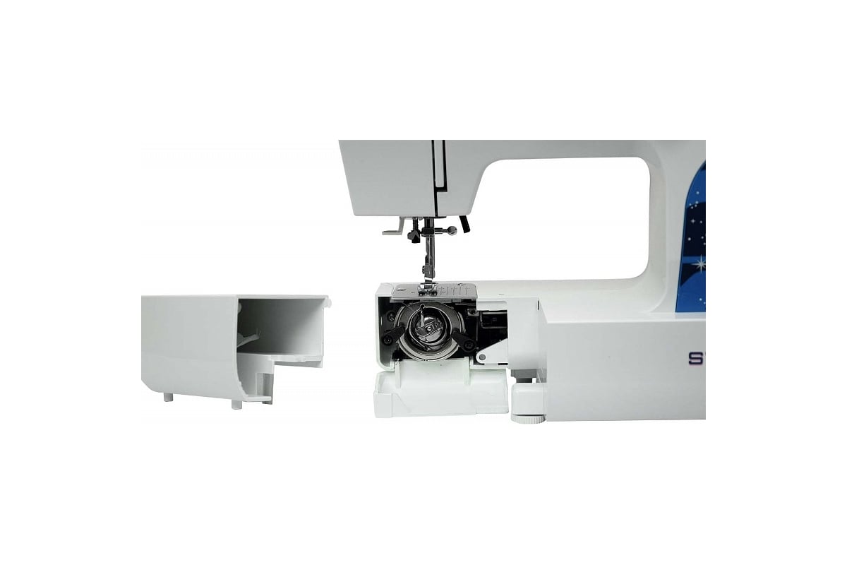 Leader STELLAR с вертикальным классическим челноком. Машина со встроенным нитевдевателем, который поможет ускорить процесс шитья, быстро вдеть нить в иглу. Удобная, простая в управлении и лёгкая в заправке. При намотке на шпульку срабатывает автоблокировка иглы. Предусмотрена удобная ручка для транспортировки, при необходимости машину можно взять с собой на дачу. Leader STELLAR выполняет 22 швейные операции: трикотажные, эластичные, потайные, оверлочные и декоративные строчки, в том числе и полуавтоматическую петлю для пуговиц. Срезы изделия аккуратно обрабатываются оверлочными строчками.