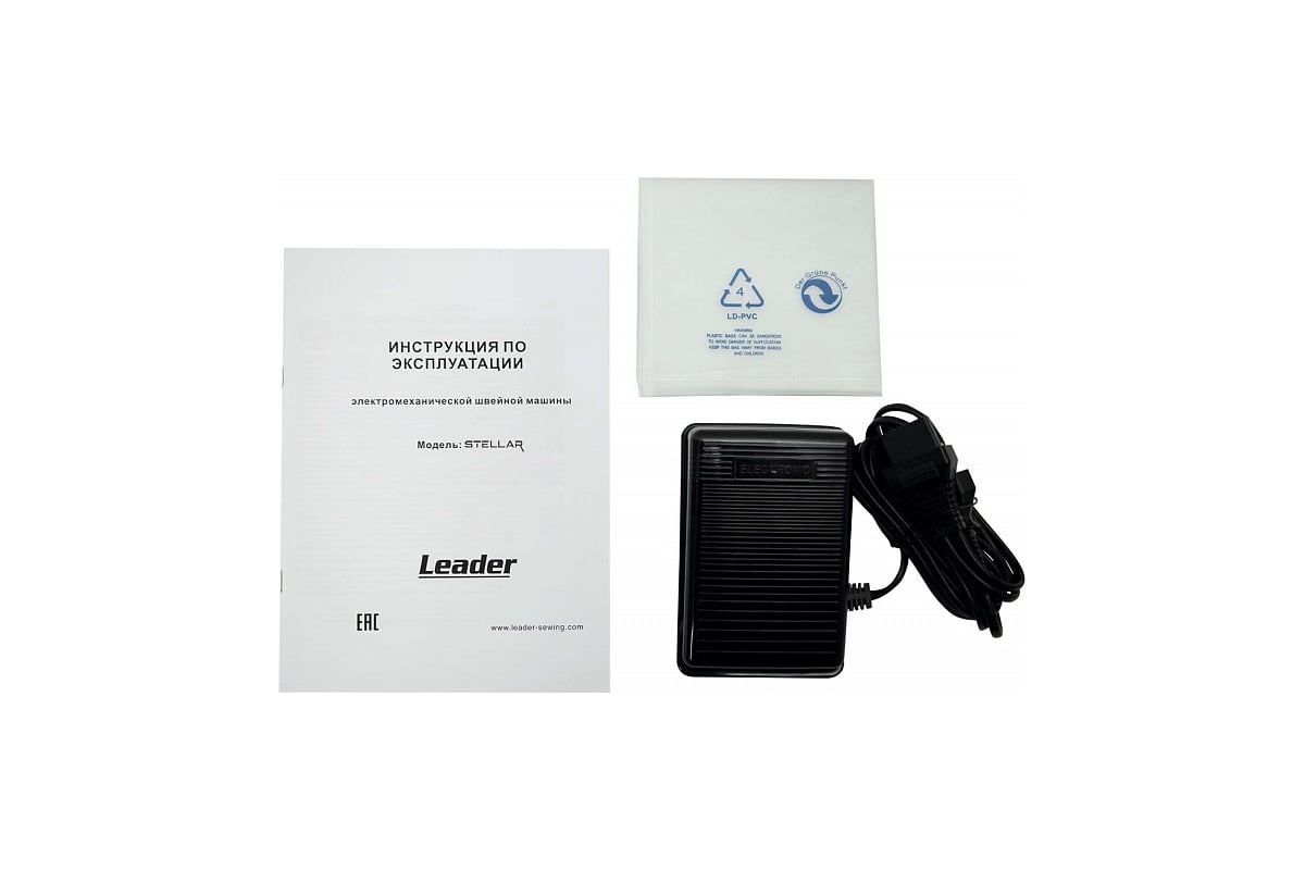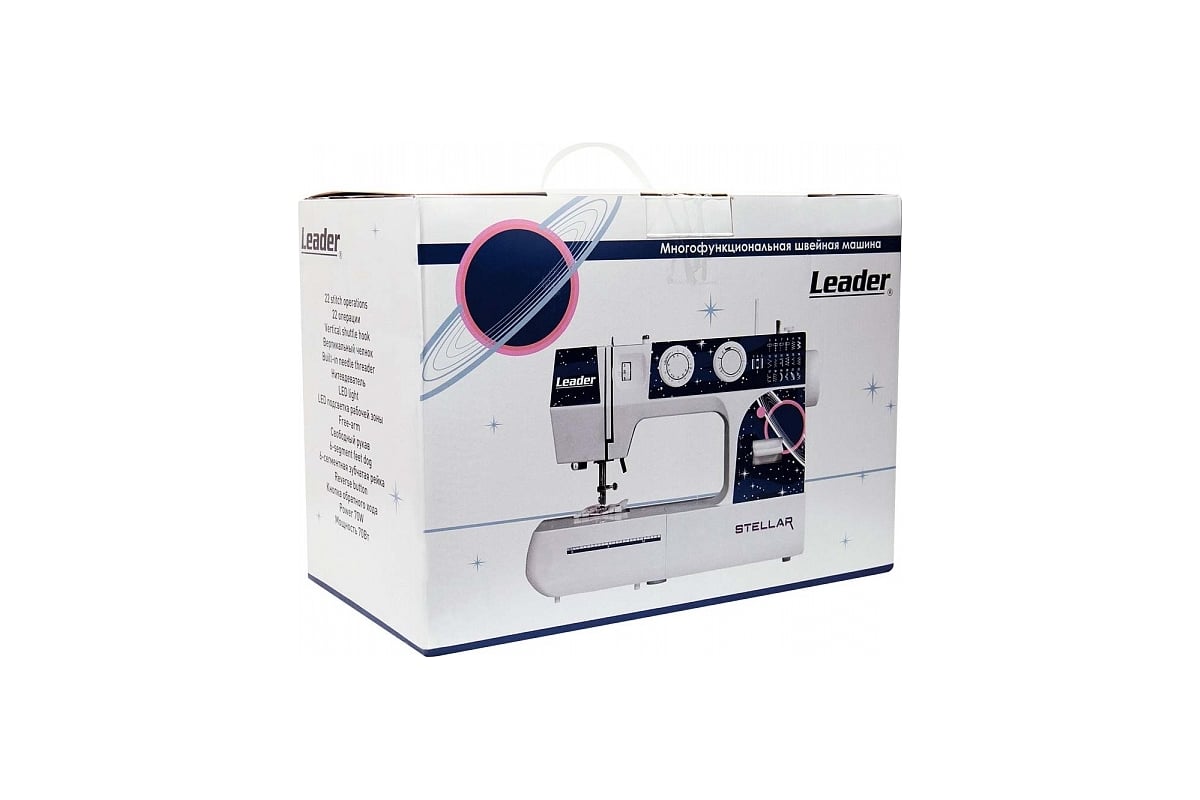При установке второго катушечного стержня, можно шить двойной иглой, игла приобретается дополнительно. Светодиодная подсветка ярко освещает рабочую зону в любое время суток. Для комфортного хранения машины в комплекте предусмотрен мягкий чехол. Швейная машина - Leader STELLAR идеально подходит для любителей шитья и новичков в домашнем использовании.