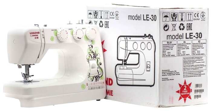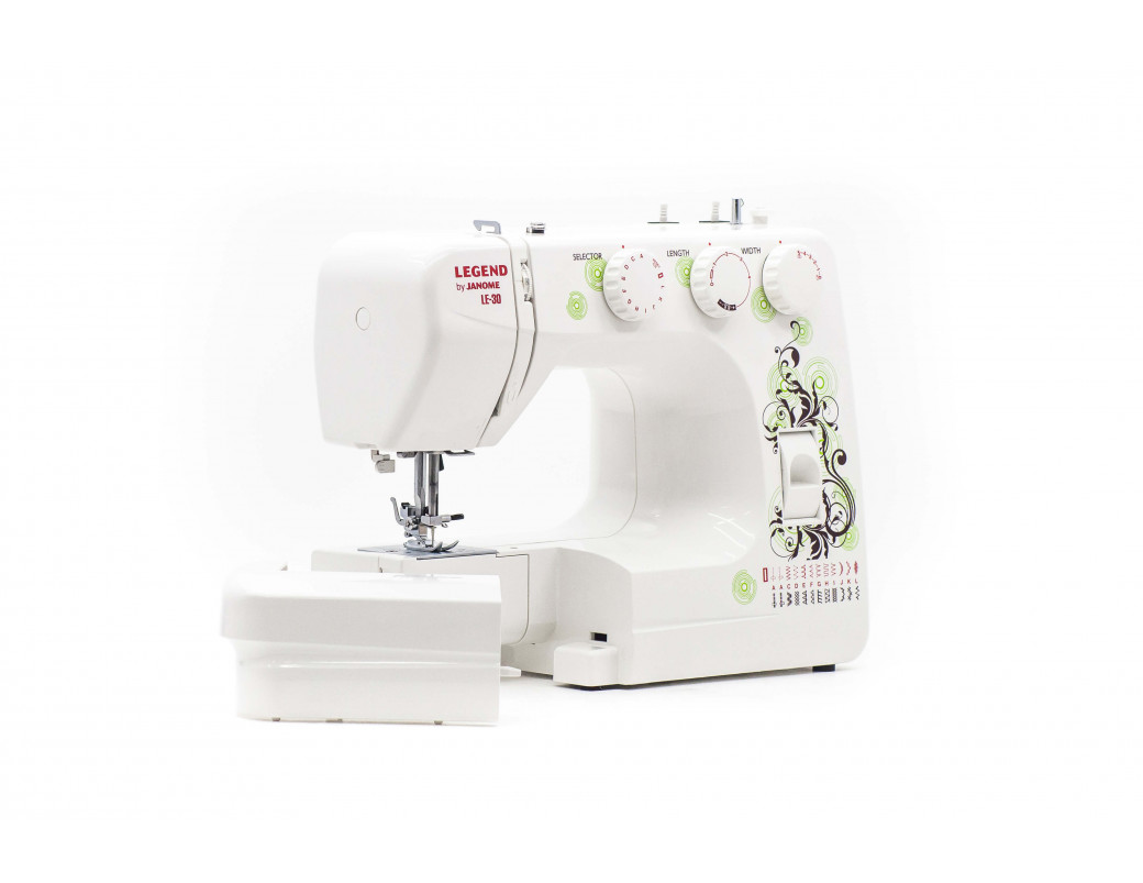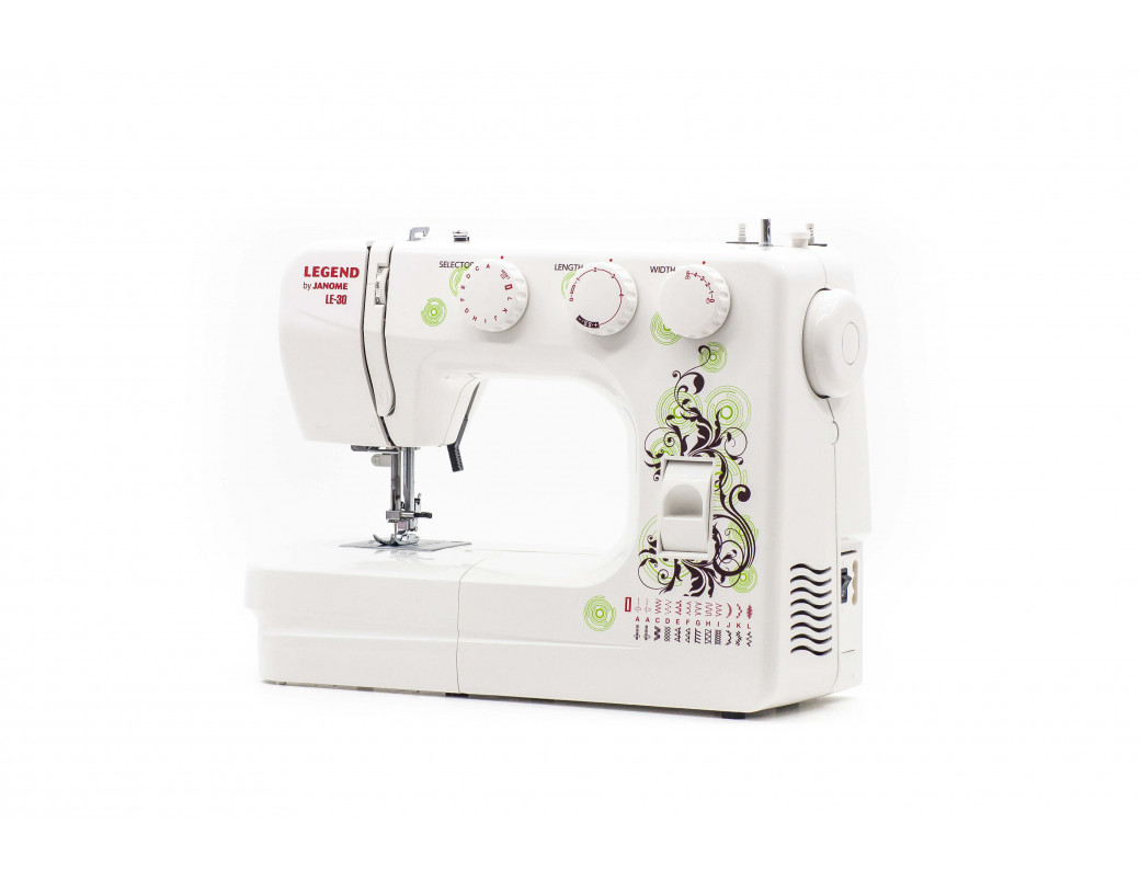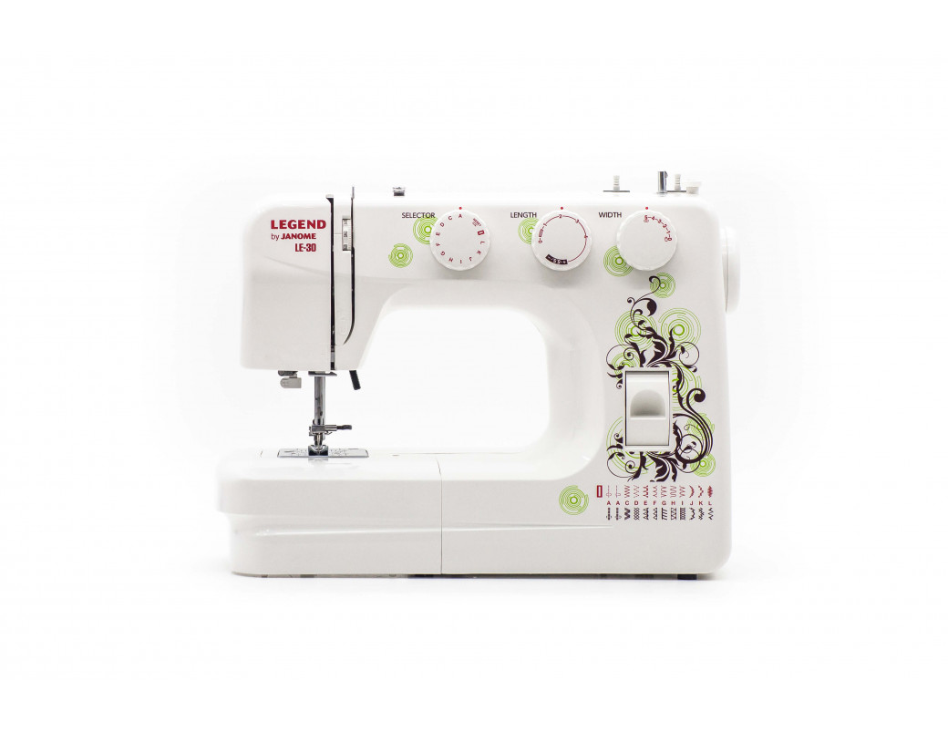 Швейная машина Janome Legend LE-30 с вертикальным качающимся челноком из серии Legend by Janome. При оформлении новой серии машин дизайнеры постарались отразить тонкий внутренний мир будущих рукодельниц. Швейные машины серии Legend by Janome отличаются высоким качеством сборки и использованием металлических деталей во всех основных узлах. Модель LE-30 предлагает широкий выбор строчек, среди которых прямые, зигзаги, эластичные, потайные, трикотажные, оверлочные и декоративные. Заправка машины достаточно проста благодаря пошаговым подсказкам на корпусе машины. Благодаря встроенному нитеобрезателю больше нет необходимости всегда держать ножницы под рукой. С помощью отдельных регулировок длины и ширины стежка можно получить именно такую строчку, какую Вы хотели! В модели LE-30 петля выметывается автоматически за один прием, без необходимости поворота ткани. Для удобства шитья узких и круговых изделий имеется съемная рукавная платформа, внутри которой предусмотрен ящик для хранения лапок и других швейных аксессуаров.