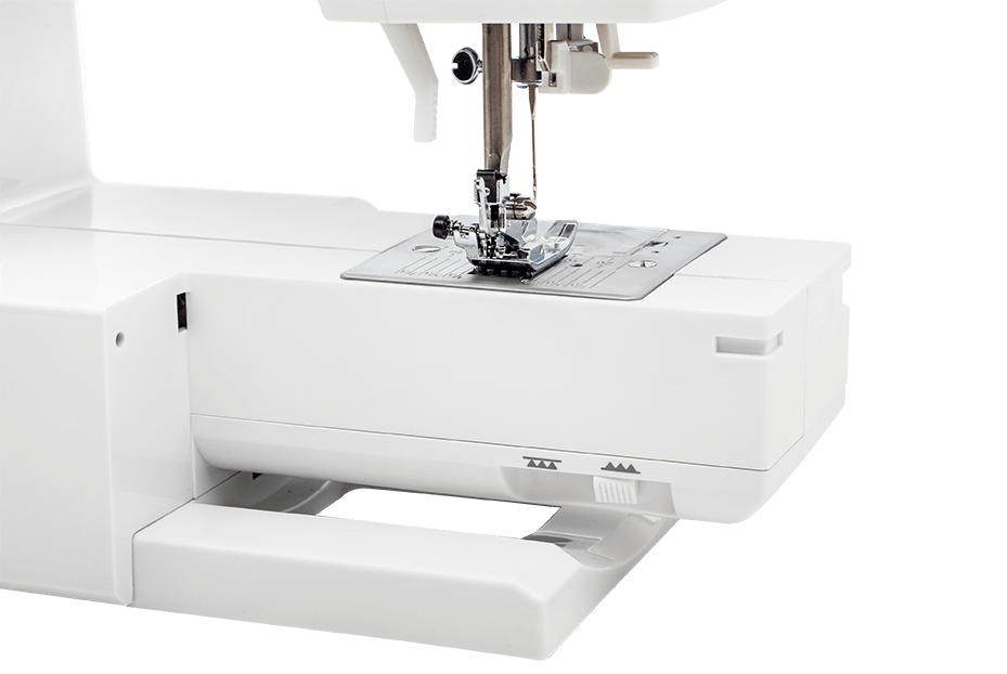 Важную роль играет 7-сегментный нижний транспортер, облегчающий процесс обработки деликатных и тянущихся тканей. К дополнительным преимуществам относятся: Нитевдеватель, встроенная светодиодная подсветка, регулятор баланса петли, съемная рукавная консоль и нитеобрезной механизм.