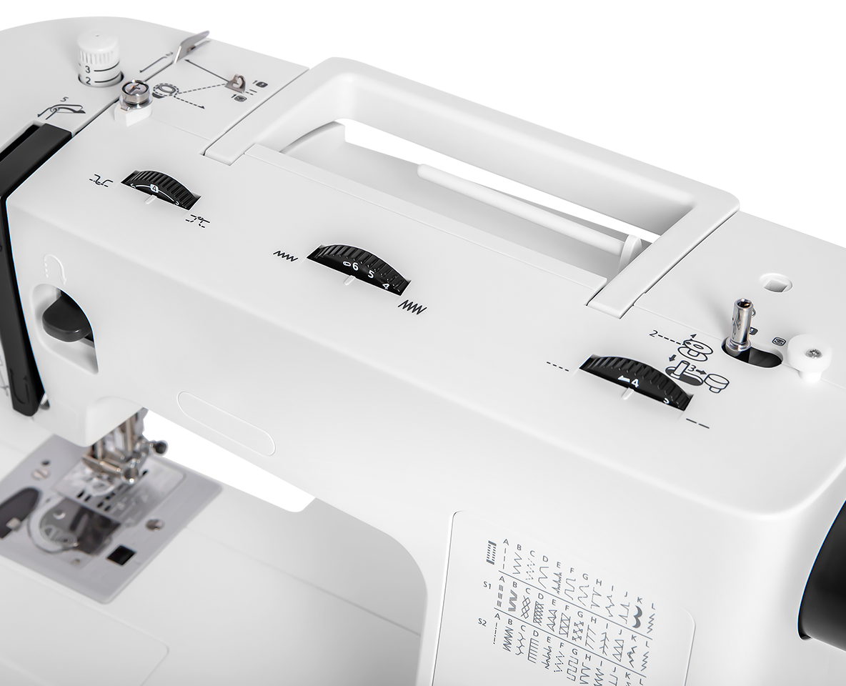 Современная светодиодная подсветка и оптимальный угол обзора позволяют долго и комфортно работать на швейной машине.