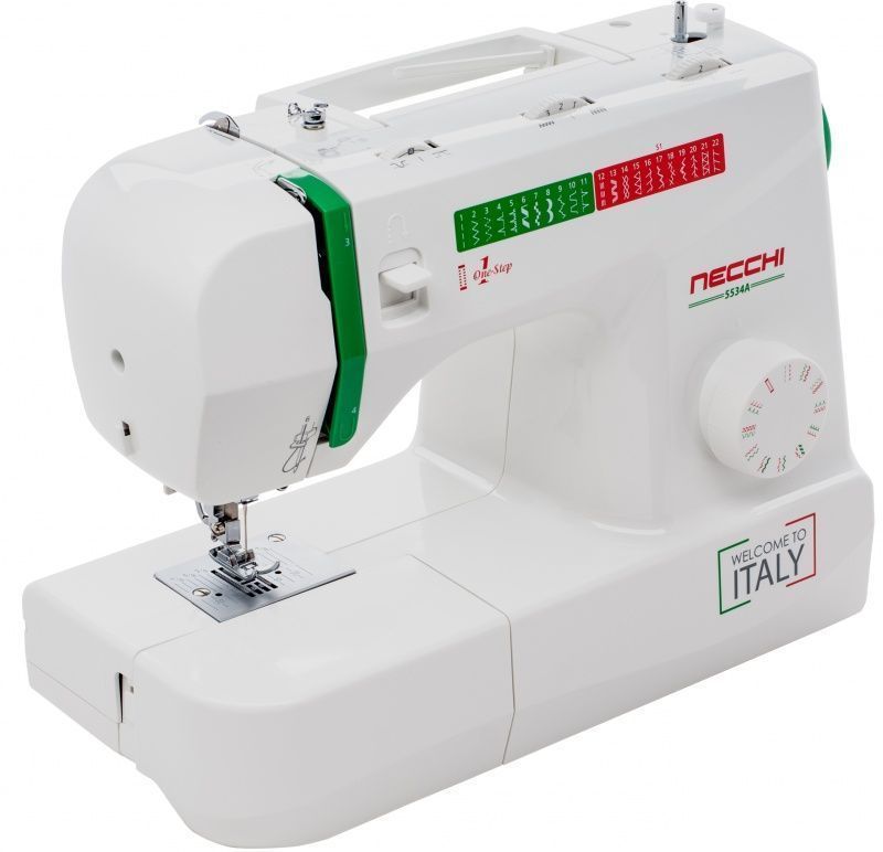 Necchi 5534A имеет классический для бытовой швейной машинки челнок, а также металлическую рамную конструкцию корпуса, сохранена и классическая, надежная и проверенная временем, мощность мотора в 70W.